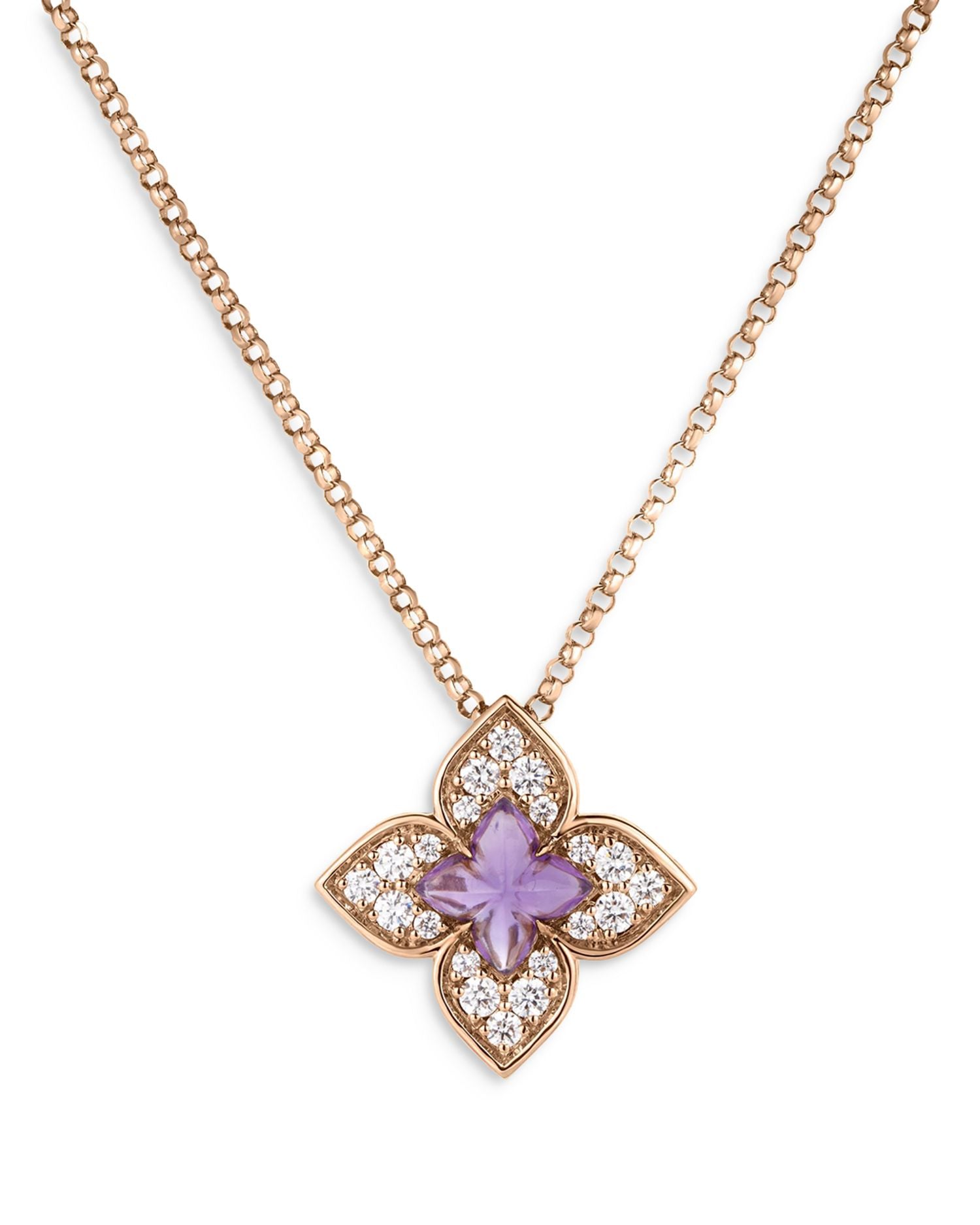 18K Rose Gold Venetian Princess Carnevale Amethyst & Diamond Flower Pendant Necklace, 16-17'