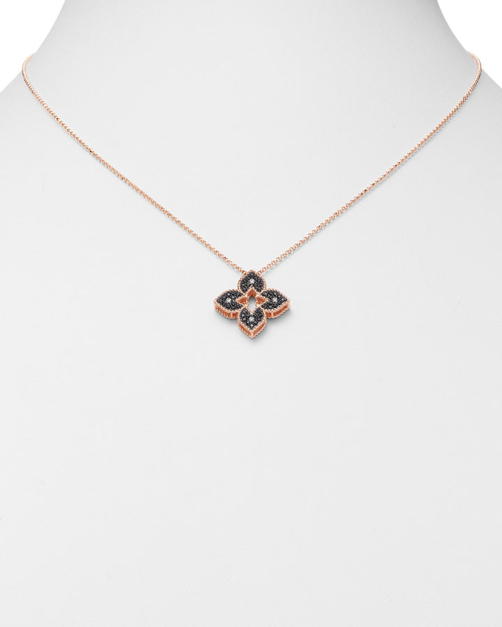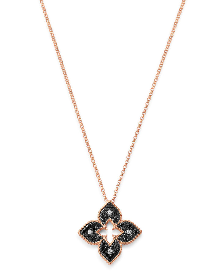 18K Rose Gold Venetian Princess Black & White Diamond Pendant Necklace, 18'
