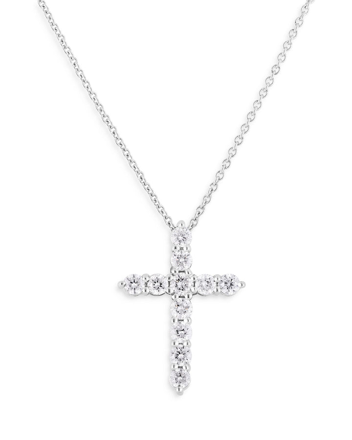 This Tiny Treasure Diamond Cross Pendant Necklace by Roberto Coin is a meaningful and elegant way to express your faith. The diamond cross pendant is set in 18K white gold, offering a refined and sparkling statement of devotion.