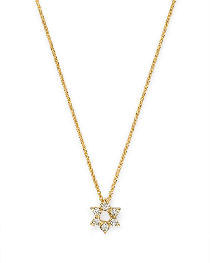 18K Yellow Gold Diamond Star of David Pendant Necklace, 16-18'