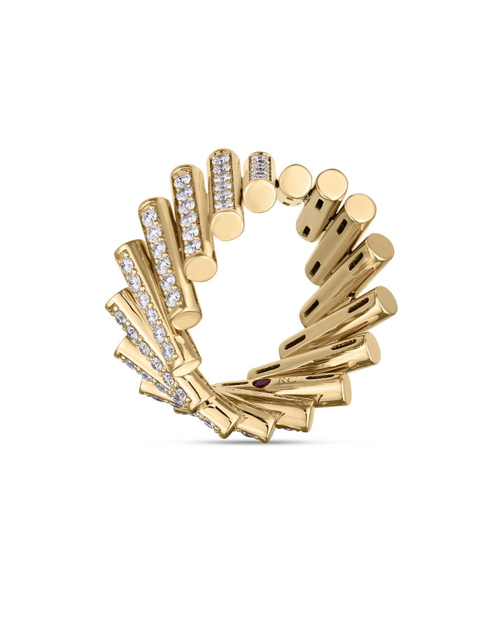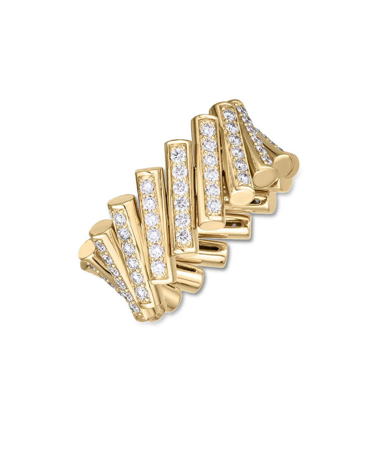 18K Yellow Gold Domino Diamond Pavé Diagonal Ring