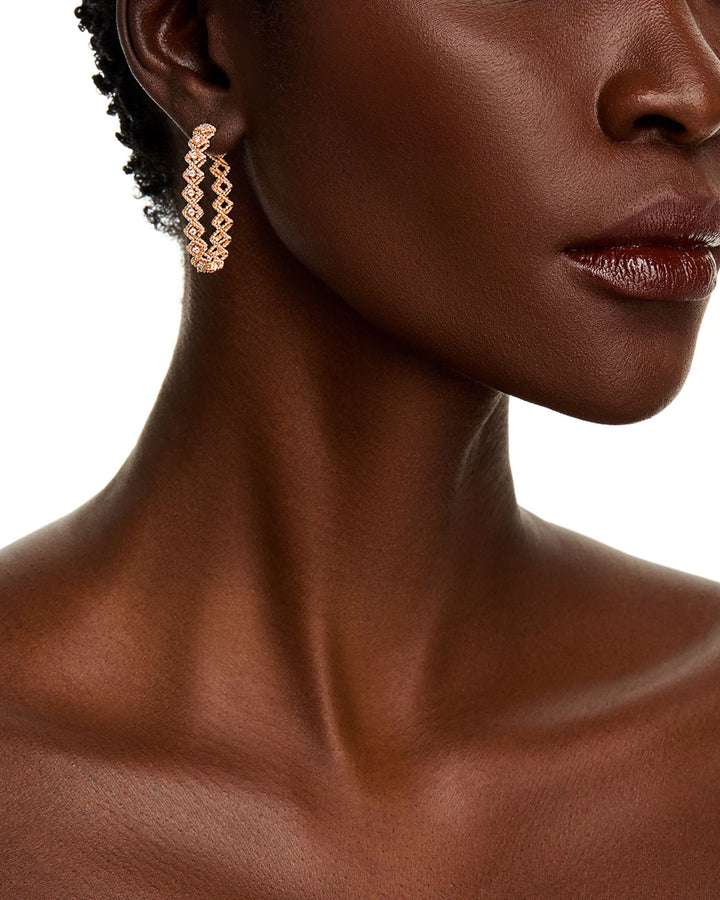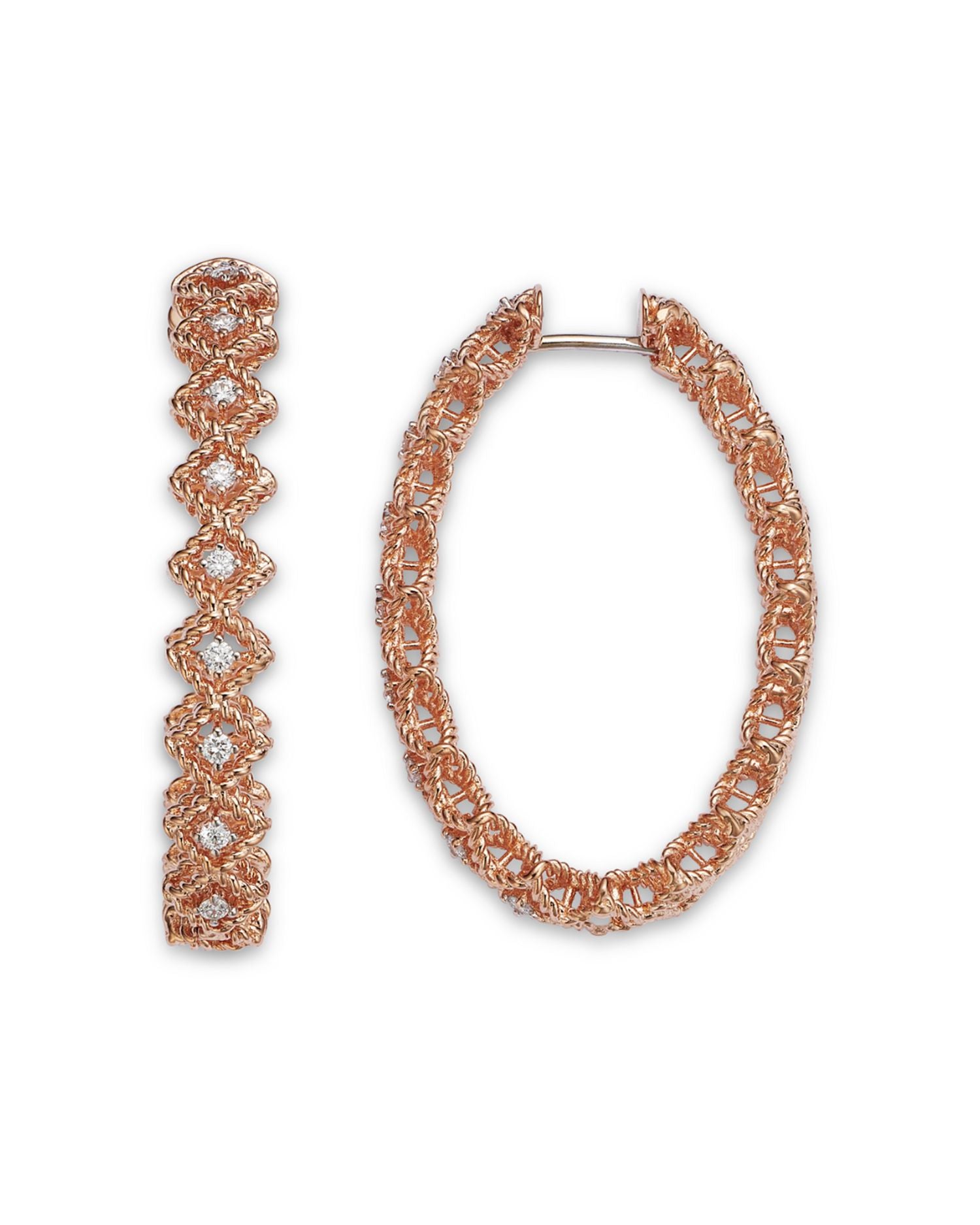 18K Rose Gold Roman Barocco Diamond Oval Hoop Earrings