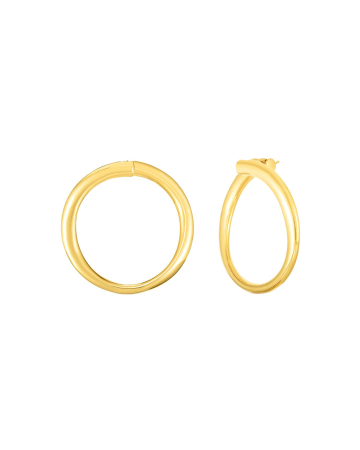 These Contours Round Hoop Earrings by Roberto Coin are sophisticated gold hoops with a sleek contoured design. Perfect for adding a touch of elegance to any outfit.
