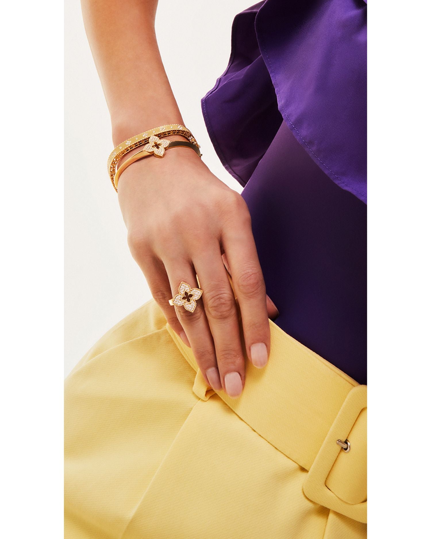 18K Yellow Gold Venetian Princess Diamond Flower Bangle Bracelet