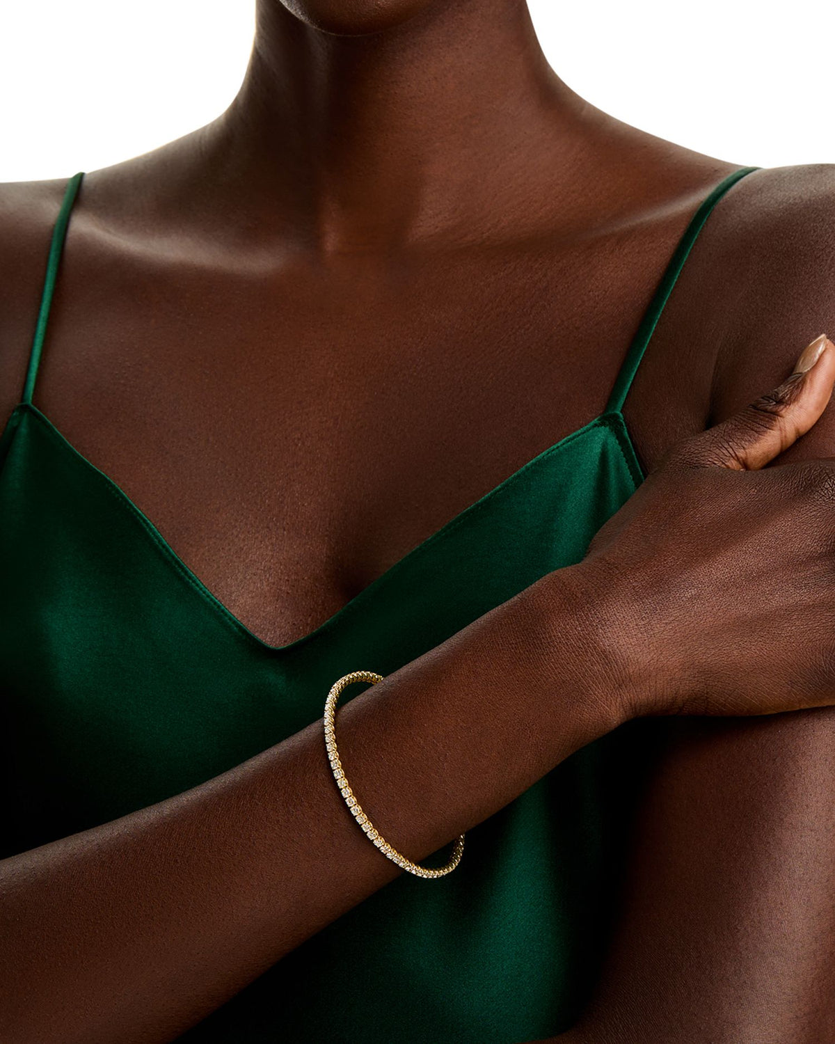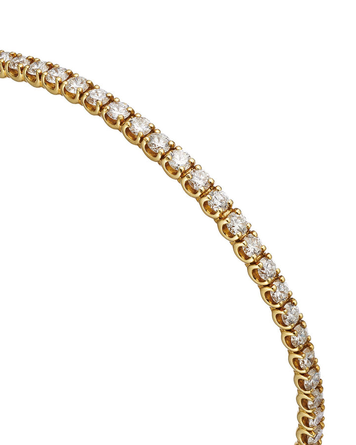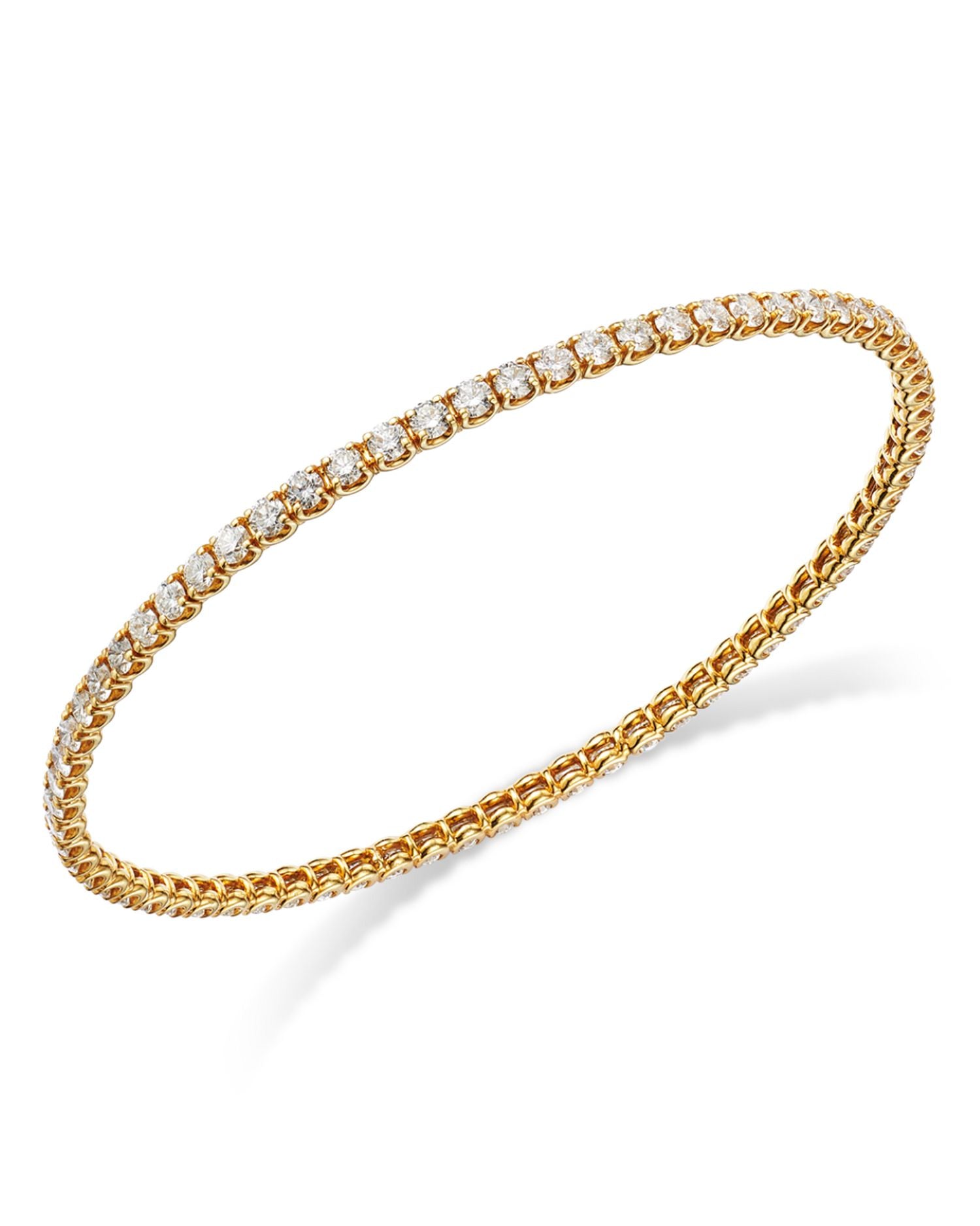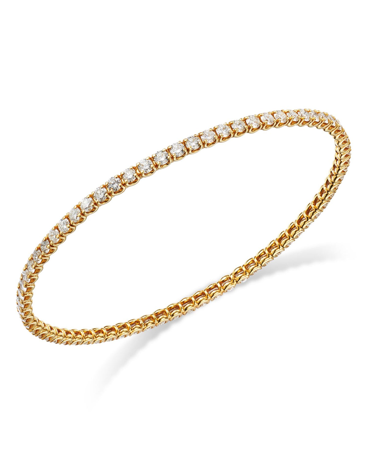 Handcrafted in 18K yellow gold. Features diamonds (5.5 ct. t.w.). Bracelet measures 7.8' inner circumference. No closure. All gemstone carat weights are approximate; variance may be 0.05 carat. Made in Italy.