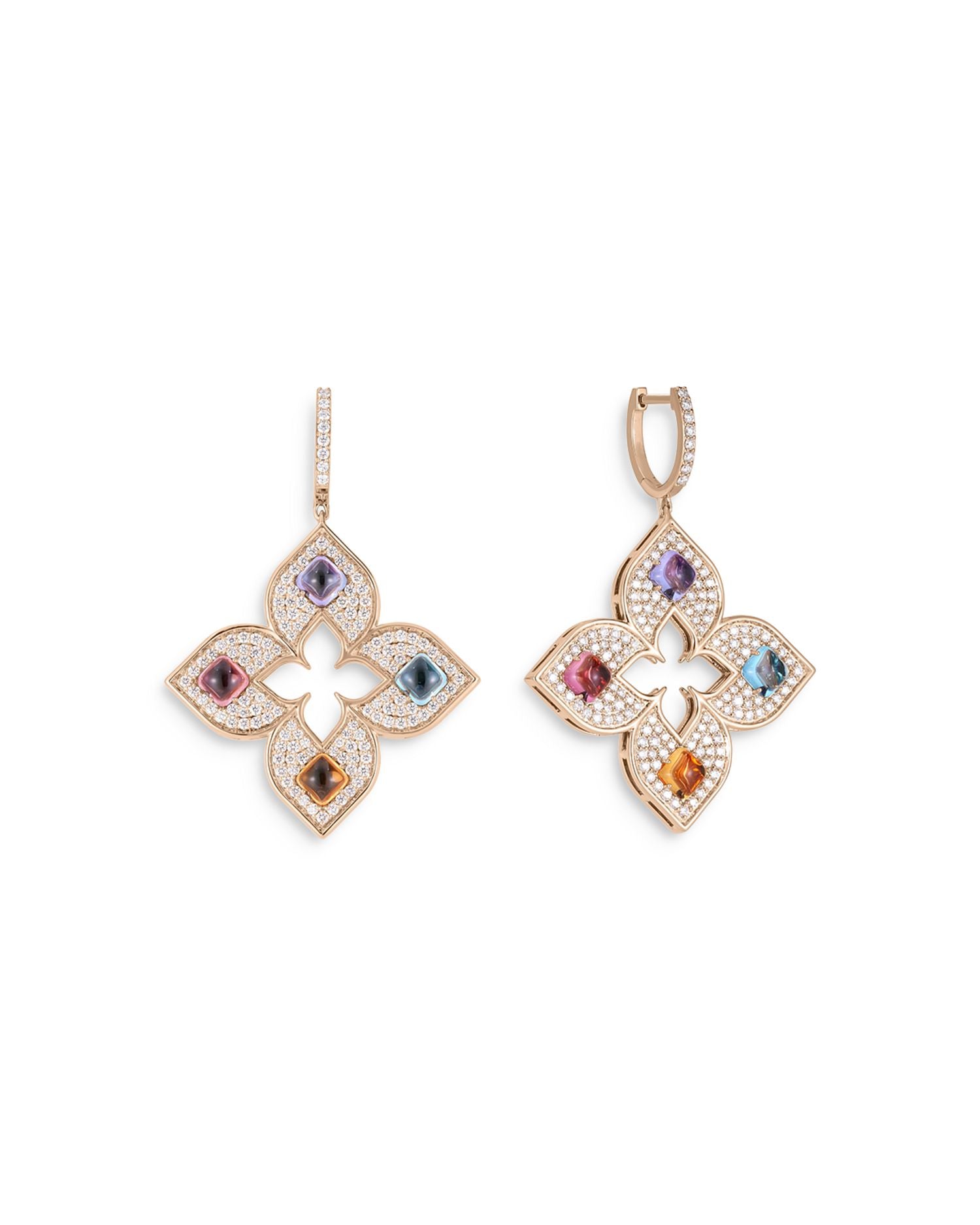 18K Rose Gold Venetian Princess Carneval Multi Gemstone & Diamond Flower Drop Earrings