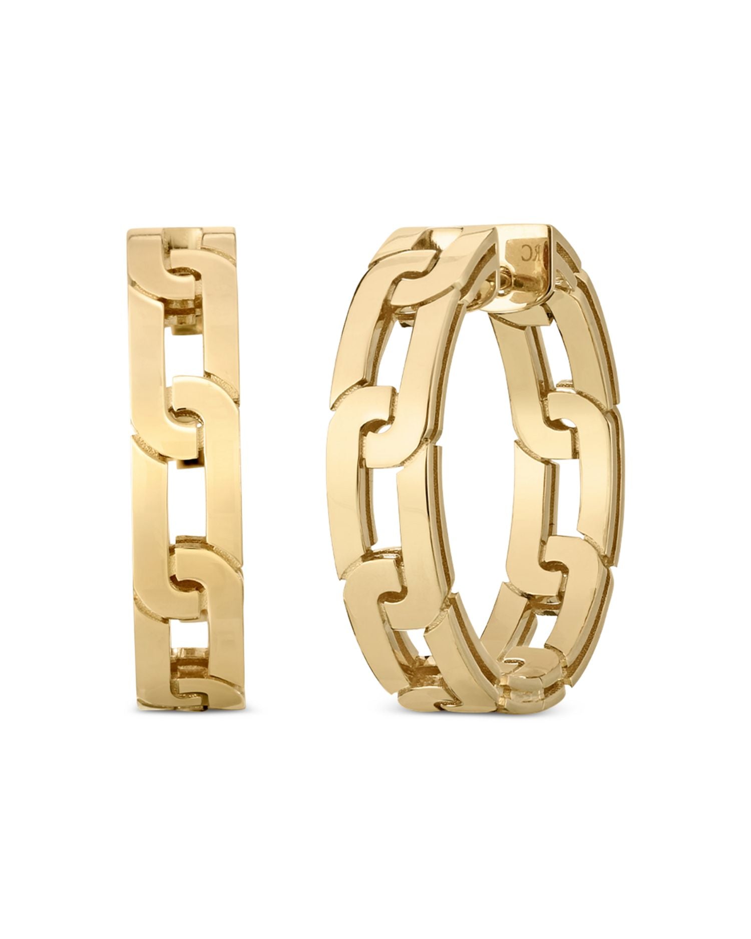 These Navarra Hoop Earrings by Roberto Coin from the Navarra collection feature a chic link design in 18K yellow gold, making them a perfect addition to any stylish ensemble.