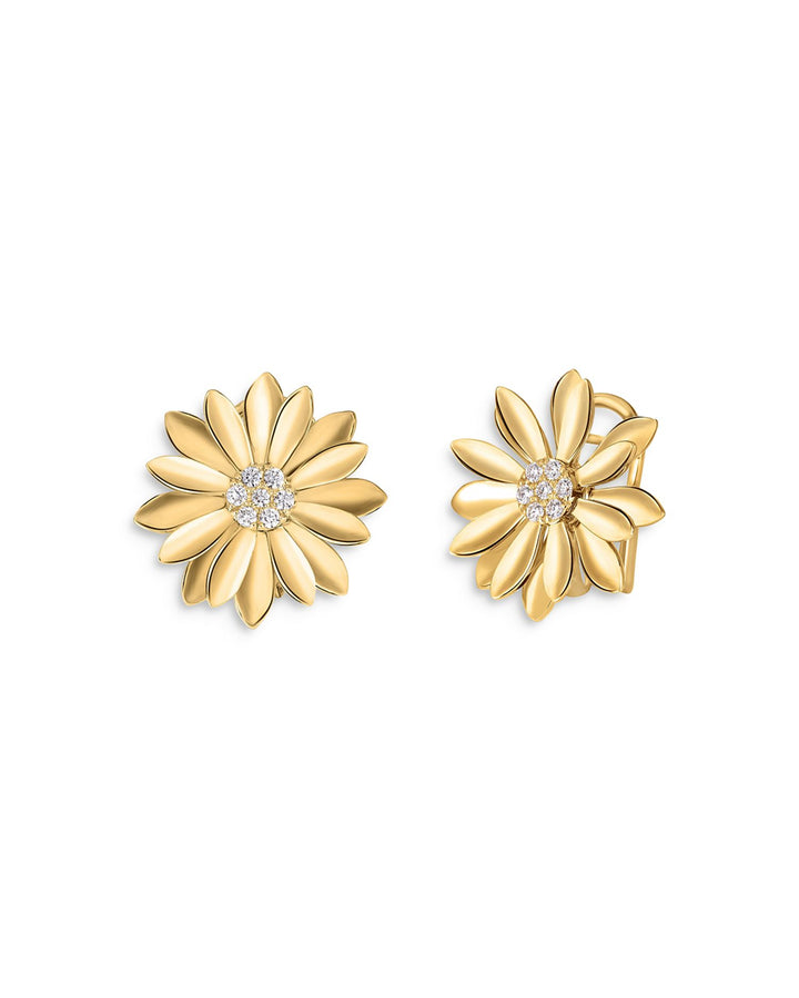 18K Yellow Gold Margherita Floral Earrings with Diamonds, 0.18 ct. t.w.