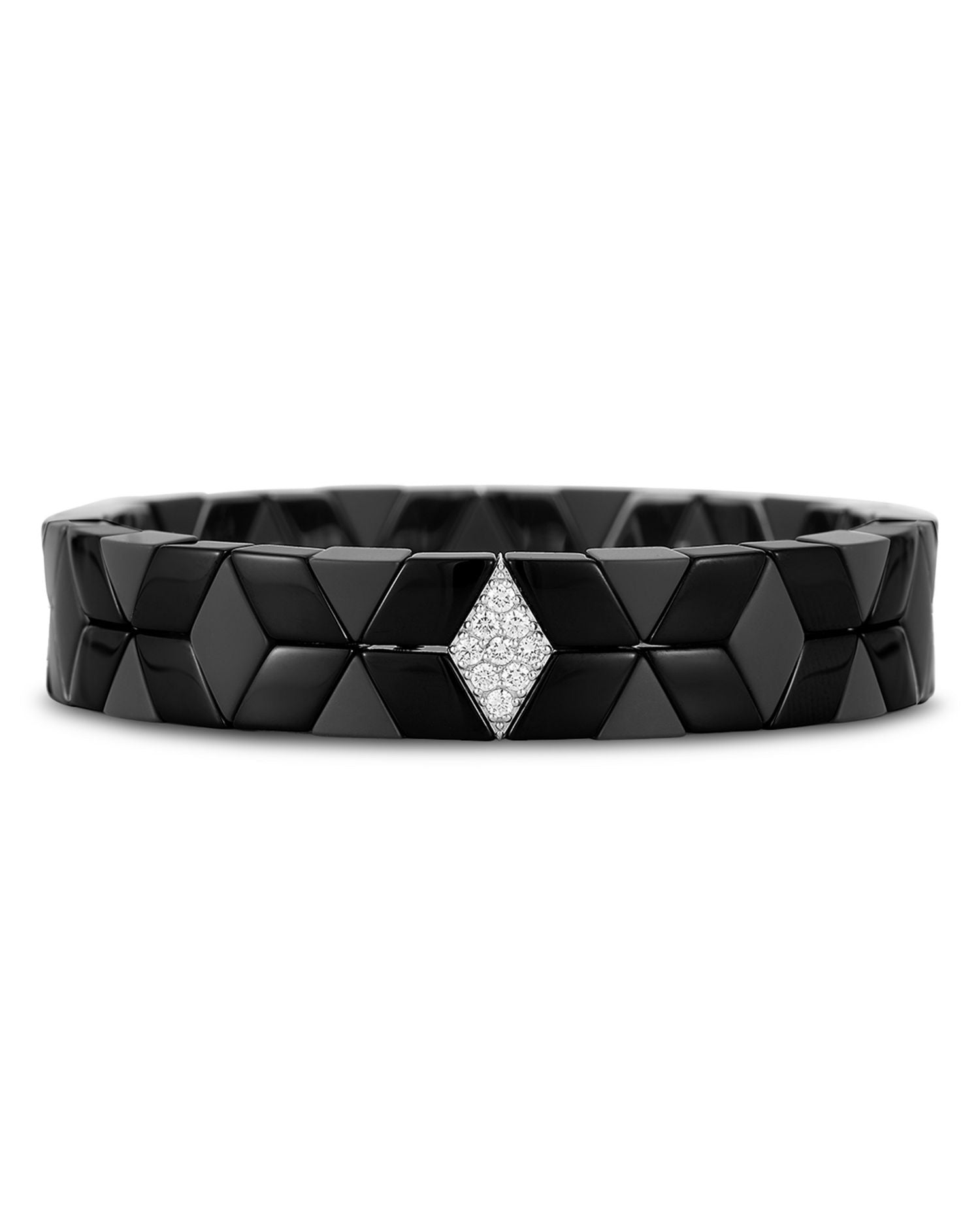 18K White Gold Black Ceramic & Diamond Small Statement Bracelet