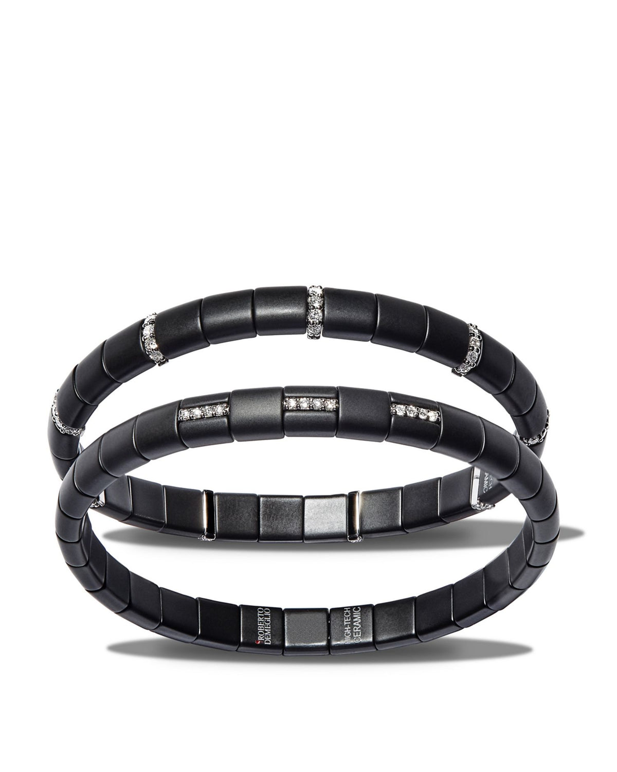 Crafted in 18K white gold and black ceramic, with 0.11 ct. t.w. diamonds. Measures 7" flexible inner circumference. No closure. White gold is rhodium-plated. Handcrafted in Italy.