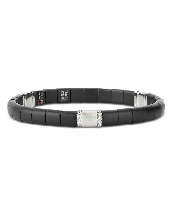 Made with 18K white gold and black ceramic with 0.43 ct. t.w. diamonds (FG/VSSI). Measures 6.5' in length. Handcrafted in Italy.
