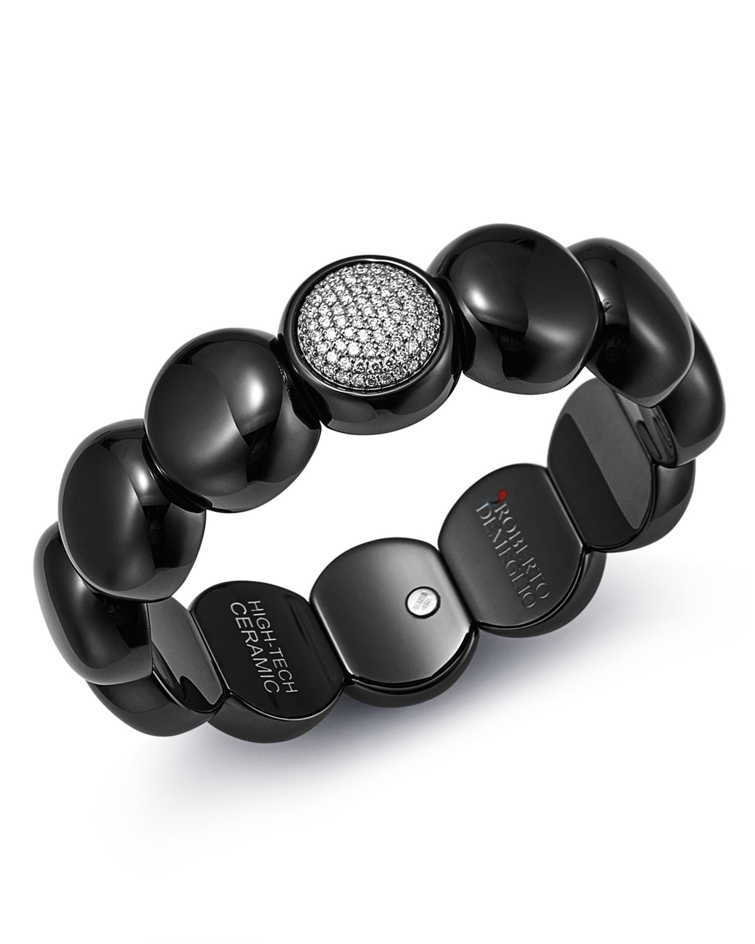 Crafted in 18K white gold and black ceramic with 0.84 ct. t.w. diamonds. Measures 7' flexible inner circumference. No closure. White gold is rhodium-plated. Handcrafted in Italy.