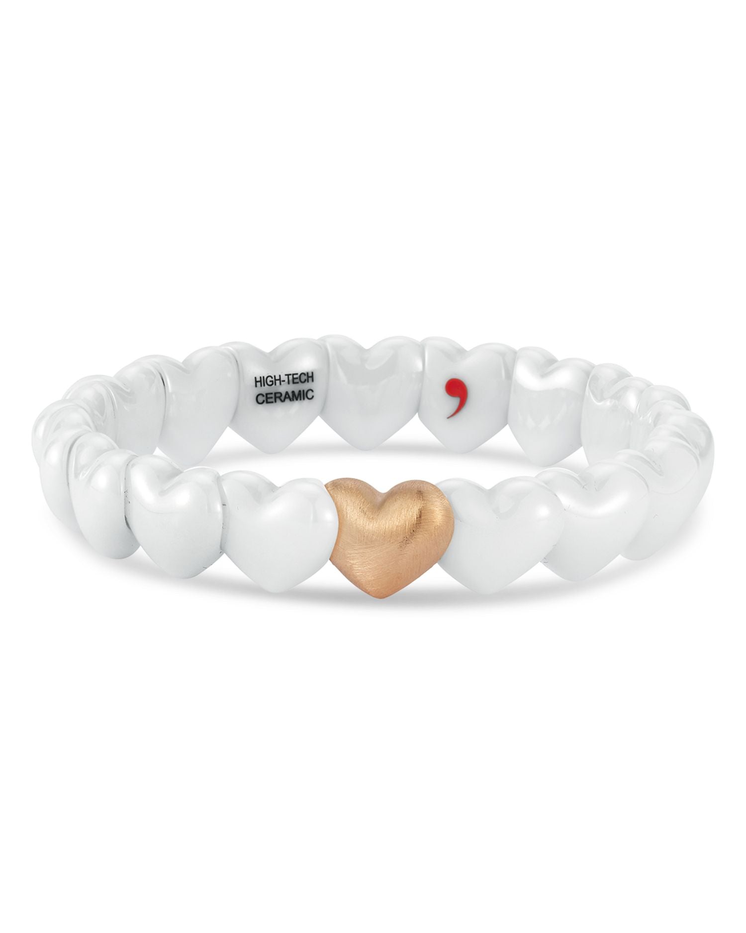 18K Rose Gold White Ceramic Heart Stretch Bracelet