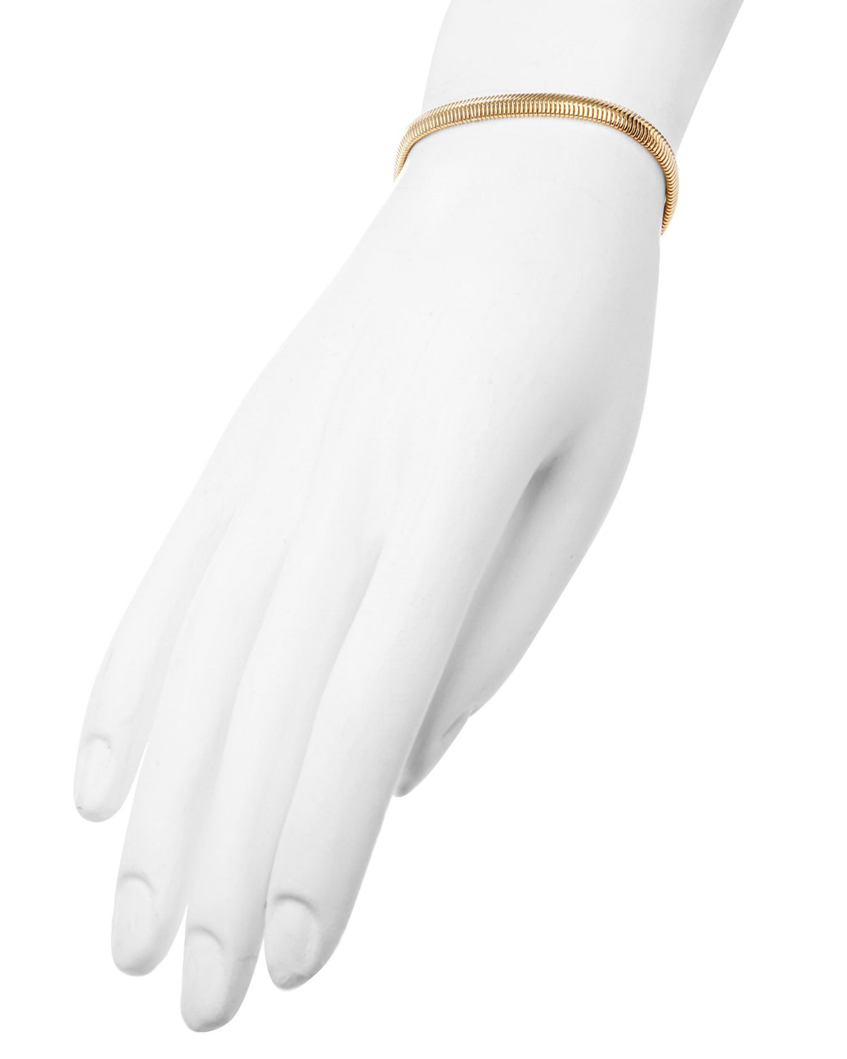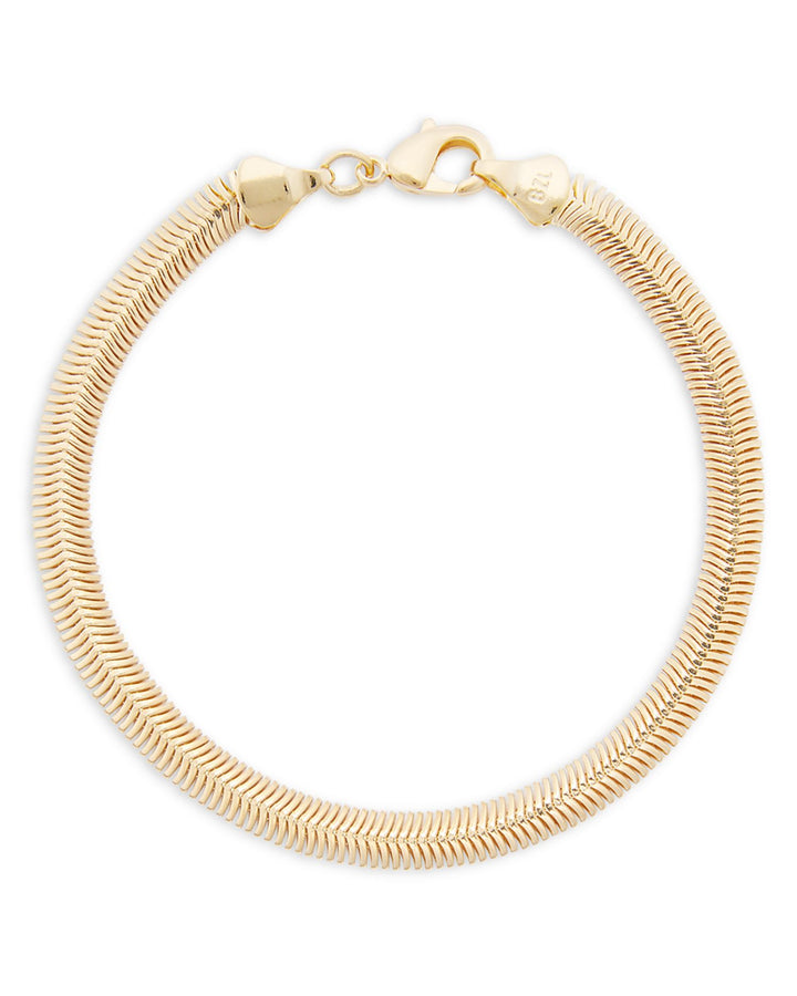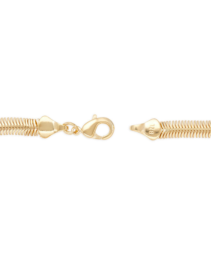 This Snake Chain Bracelet in 14K Gold Plated by Shashi is a sleek and versatile piece that adds understated elegance to any ensemble. The fluid snake chain design wraps gracefully around the wrist, making it perfect for layering or wearing solo for a minimalist statement.