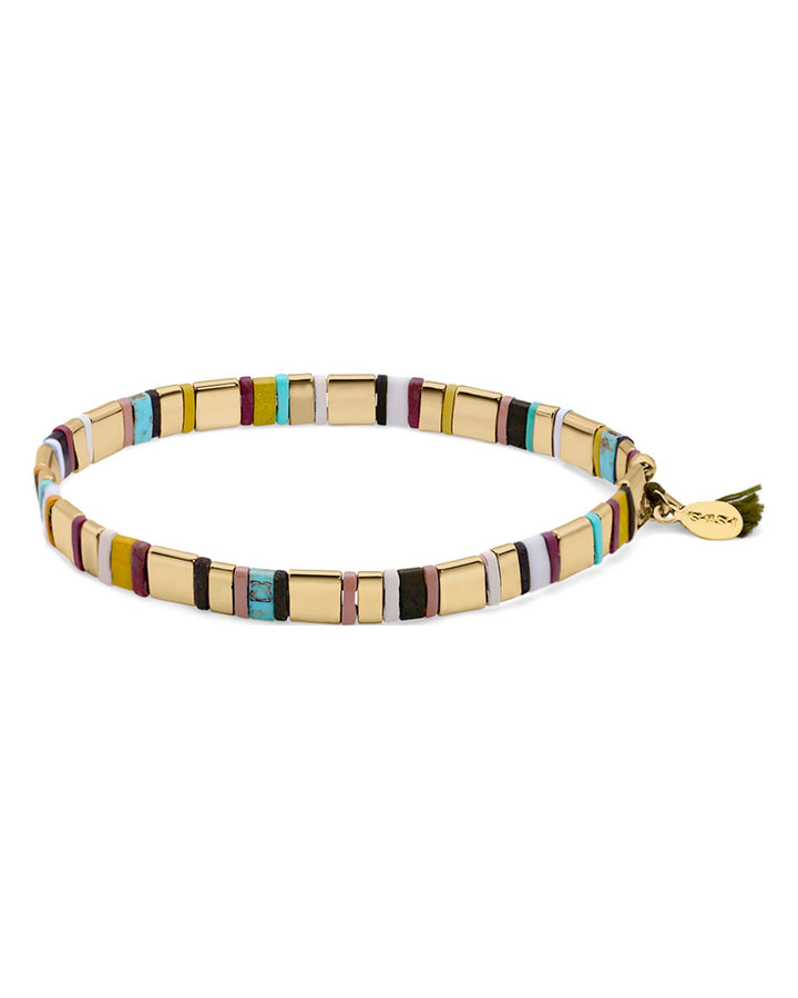 This Tilu Zenzo Beaded Stretch Bracelet by Shashi, from the Tilu collection, features a delicate design with enamel beads and gold vermeil accents. Its stretch construction ensures comfort while offering a vibrant, bohemian-inspired touch.