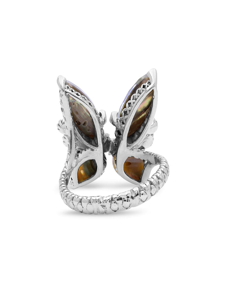 Faceted Natural Quartz Abalone & Rhodolite Garnet Butterfly Ring