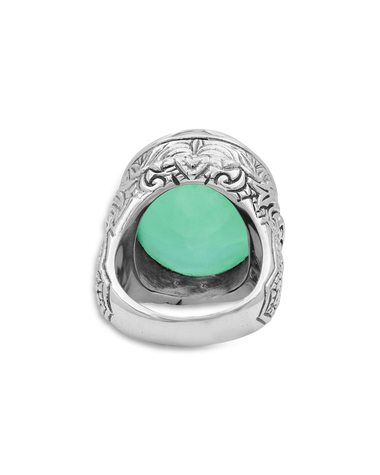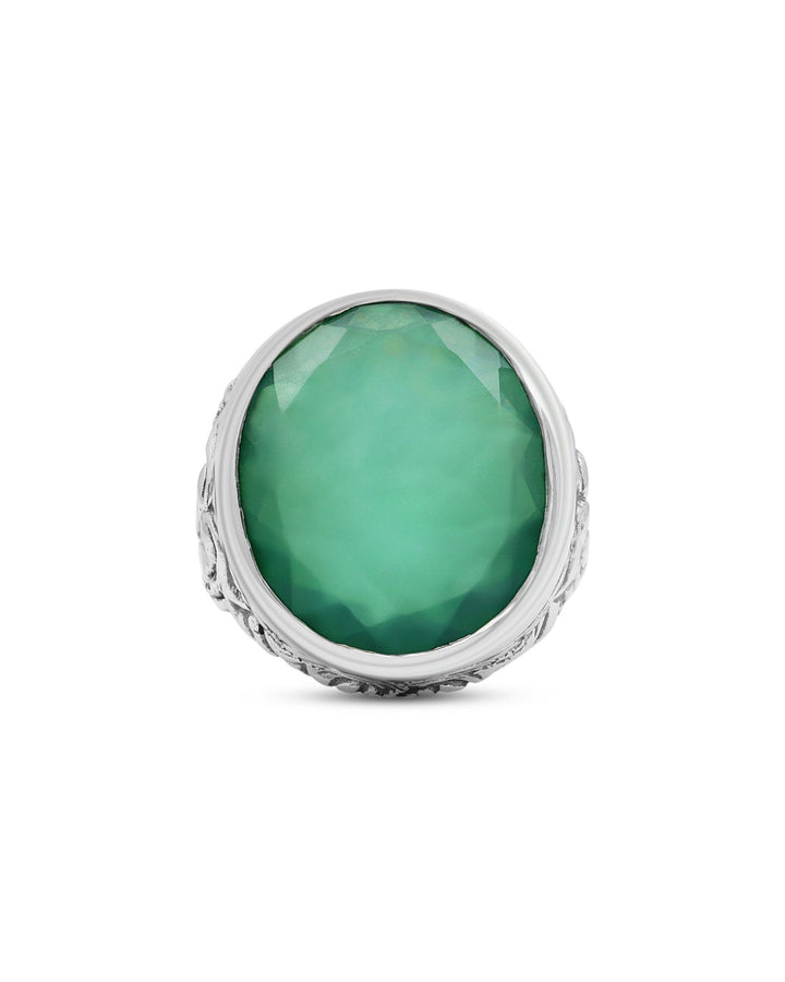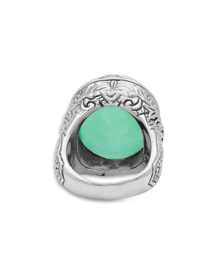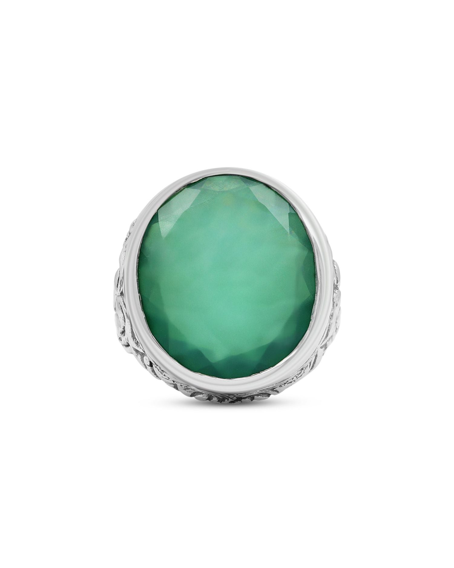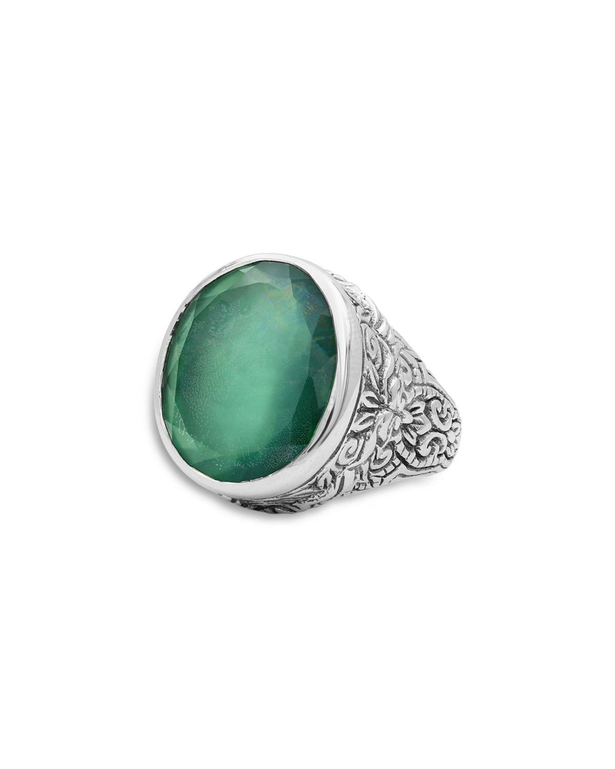 This Garden of Stephen Green Agate Ring by Stephen Dweck, from the Garden of Stephen collection, features a serene green agate stone set in sterling silver. Its understated elegance and organic design make it a timeless addition to any jewelry collection.