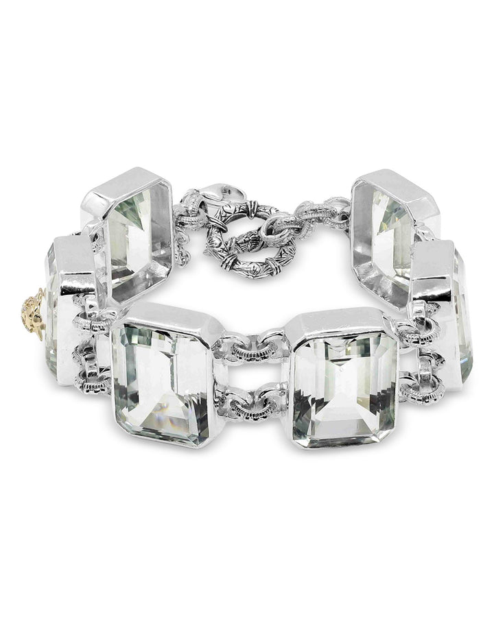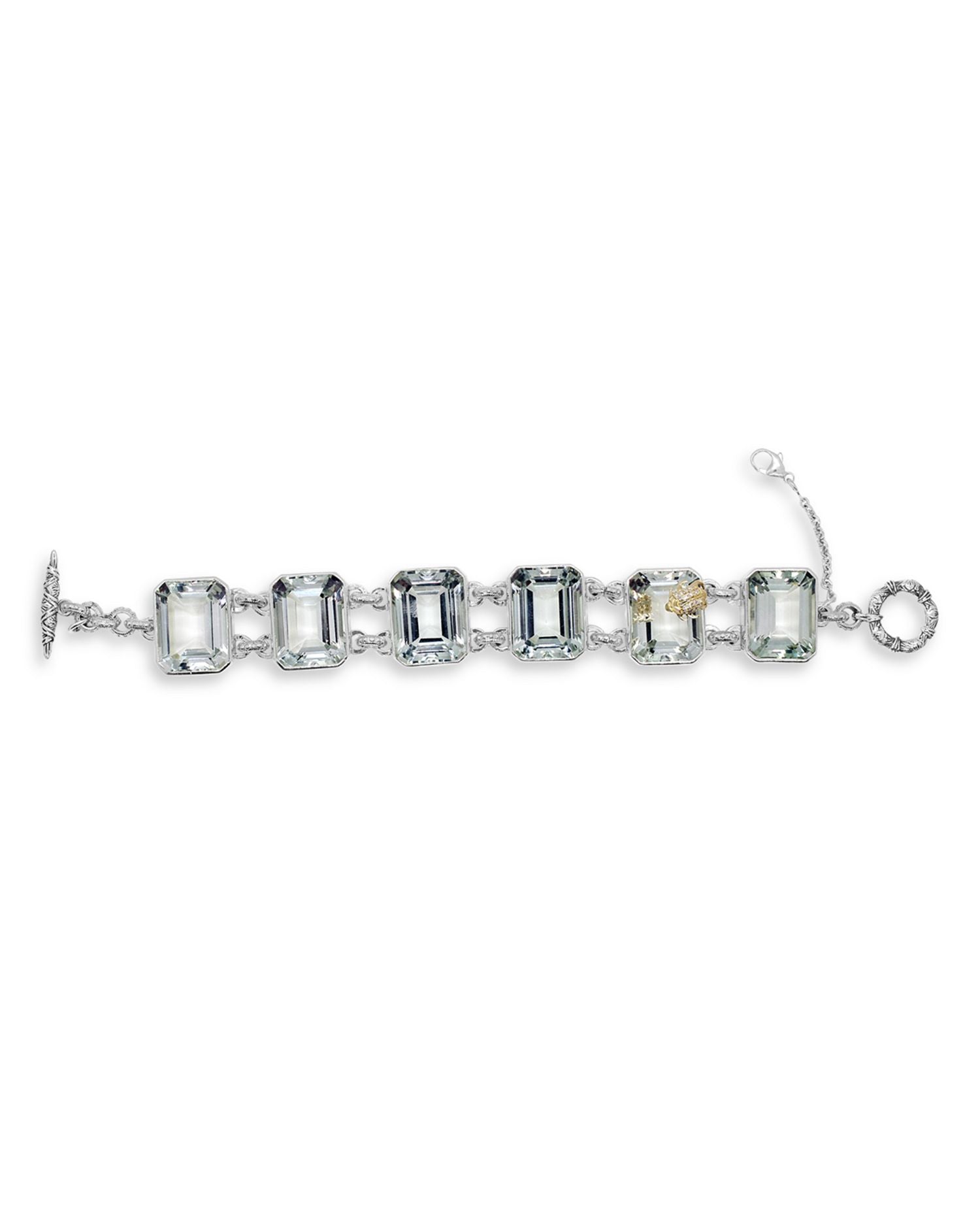 Handcrafted in sterling silver and 18K yellow gold with quartz and 0.65 ct. t.w. diamonds. Length: 7.5' with toggle clasp closure. All gemstone carat weights (ct. t.w.) are approximate, with variance of 0.05 carat. Made in India.