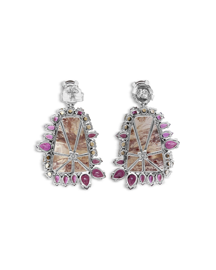 18K Yellow Gold & Sterling Silver One of a Kind Multi-Gemstone & Champagne Diamond Drop Earrings