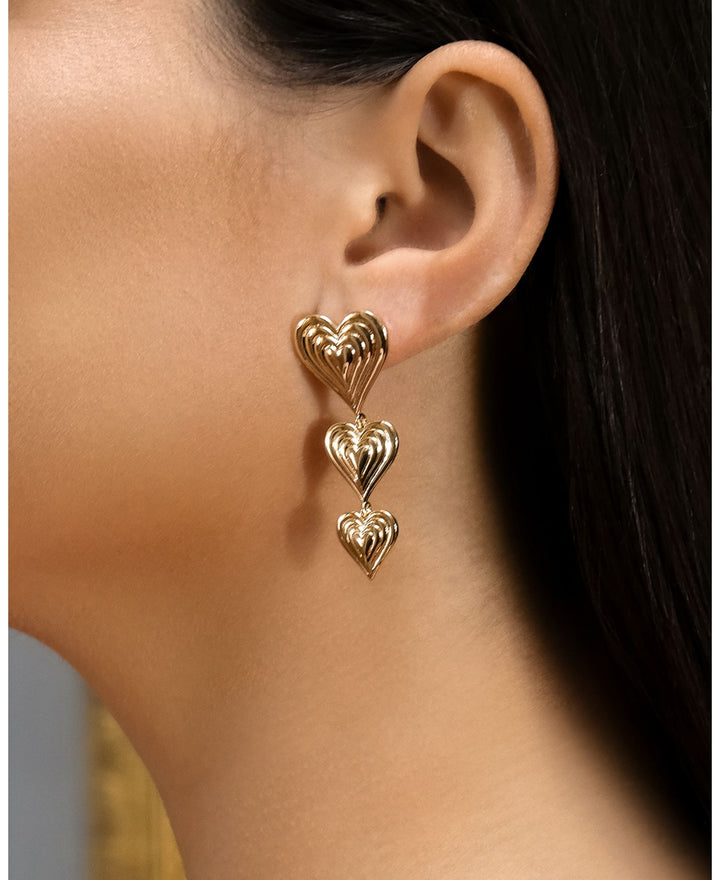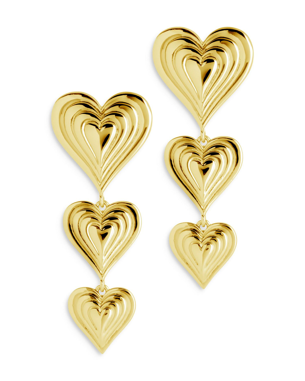 These Beating Heart Drop Earrings by Sterling Forever feature a romantic and modern design with a bold heart silhouette. The gold-plated finish and delicate drop shape make them a charming accessory for adding warmth and elegance to any look.