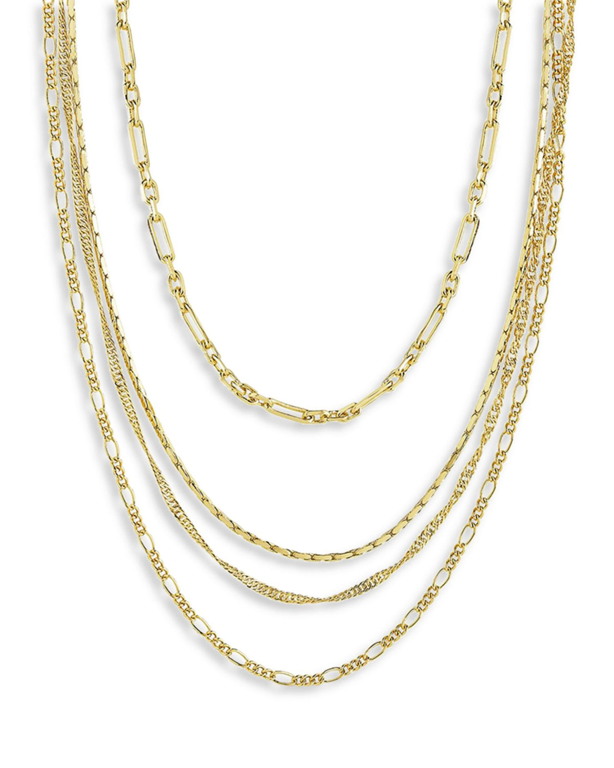 This Multi Chain Layered Necklace by Sterling Forever offers a chic, layered look with its delicate gold-plated chains. Designed for effortless styling, this versatile necklace transitions seamlessly from day to evening.