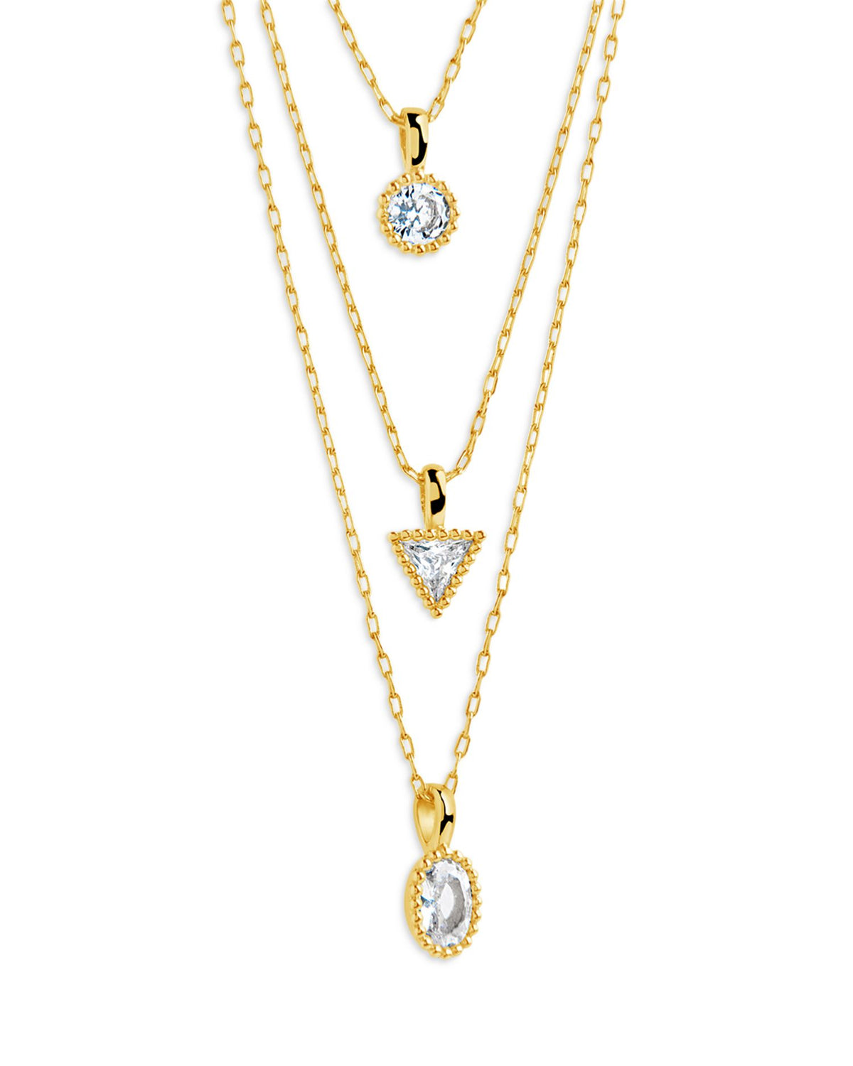 This Julie Layered Pendant Necklace by Sterling Forever, from the Julie collection, combines timeless elegance with modern versatility. Featuring delicate cubic zirconia-accented pendants, its layered gold-plated design is perfect for any occasion.