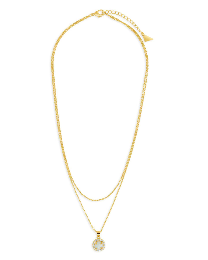 This Fabienne Layered Necklace by Sterling Forever combines sparkling cubic zirconia with a delicate created opal pendant for an ethereal look. Its layered design and gold-plated finish make it an elegant choice for everyday styling or special occasions.