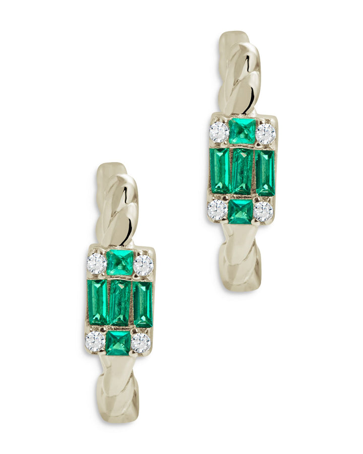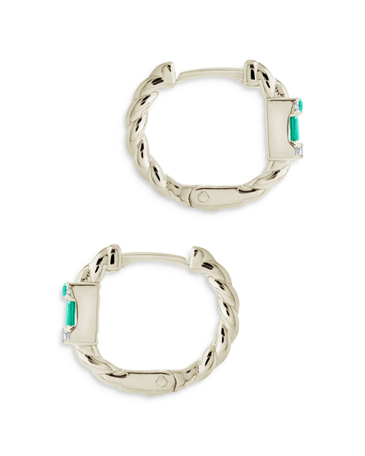 Sterling Silver Cubic Zirconia Baguette Micro Hoop Earrings