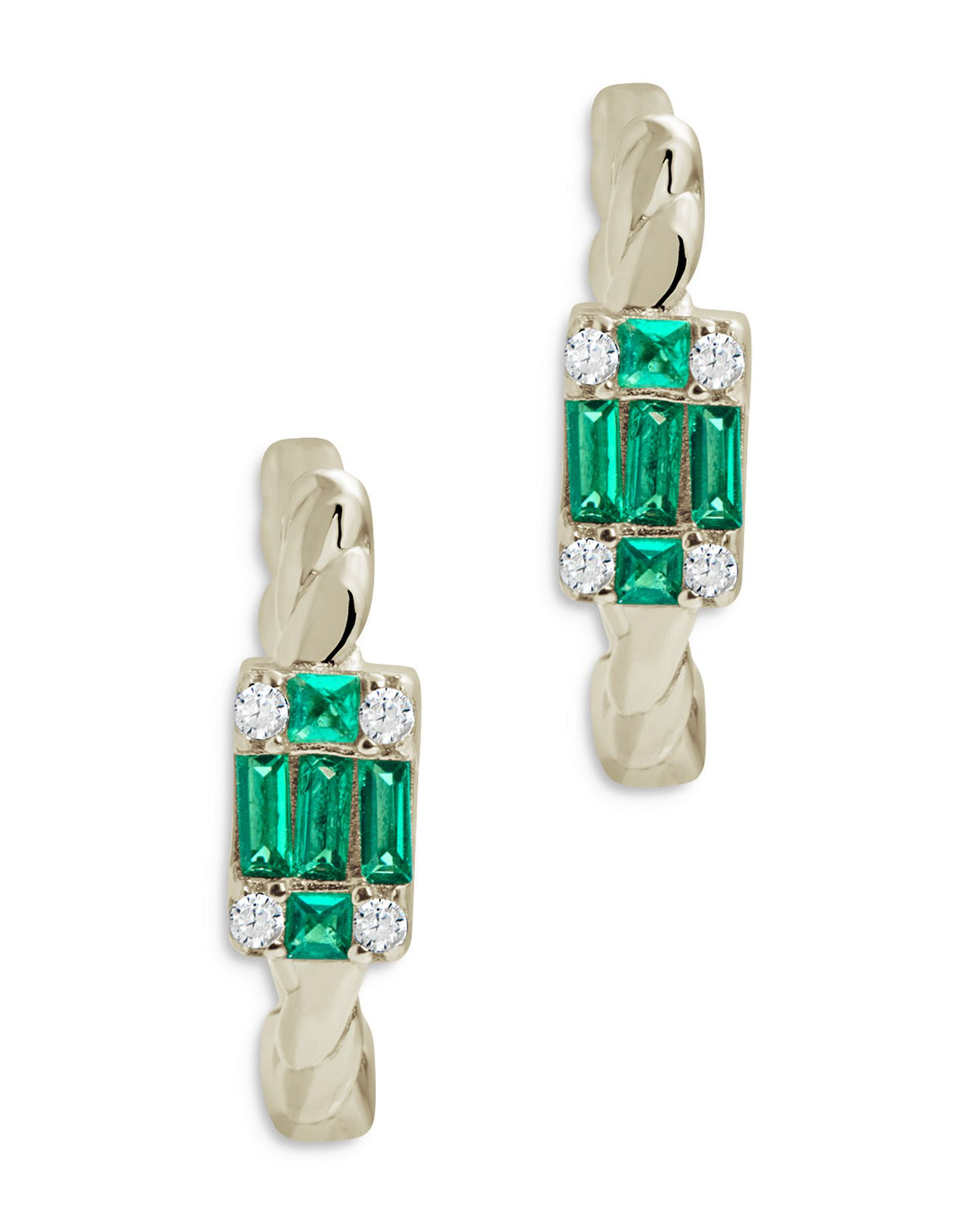 Crafted in sterling silver with baguette-cut cubic zirconia. Length: 0.5'. Hinge closure. Some silver jewelry may be surface-coated with rhodium to enhance color and shine; replating may be required over time.
