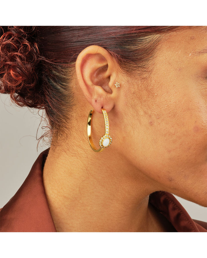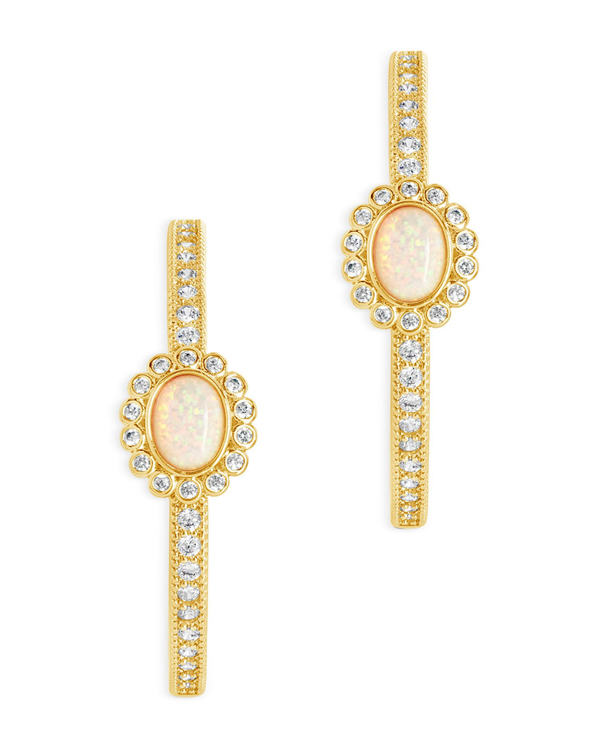 These Carina Hoop Earrings by Sterling Forever bring a contemporary twist to classic hoop designs. Featuring shimmering cubic zirconia and created opal accents set in gold-plated brass, these hoops strike the perfect balance between modern glamour and timeless charm.