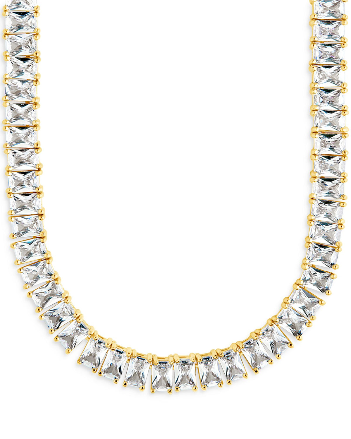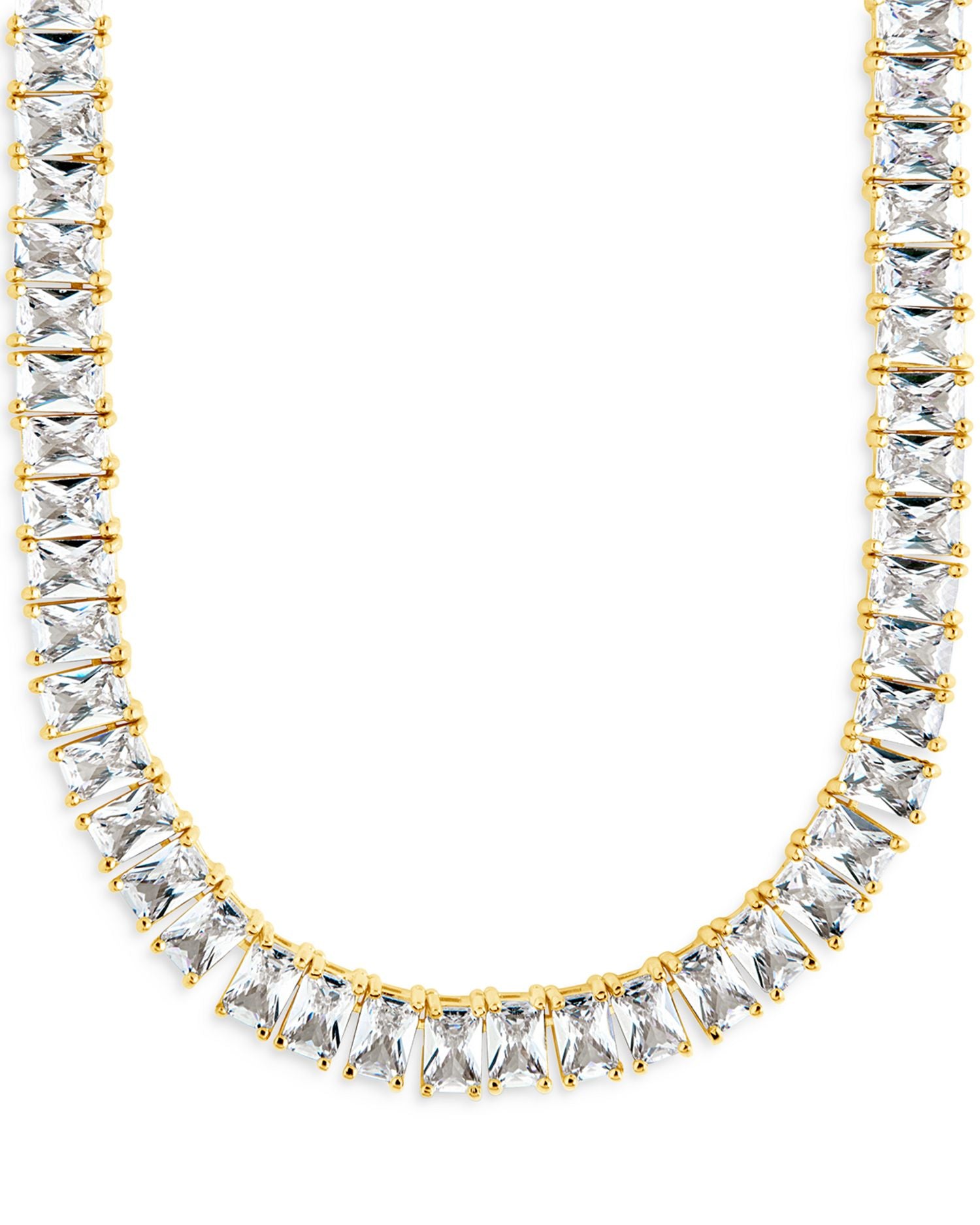 This Marisol Tennis Necklace by Sterling Forever from the Marisol collection is a timeless statement of elegance. Featuring a continuous line of sparkling cubic zirconia stones set in 14K gold-plated brass, this 20-inch necklace adds a touch of luxurious sophistication to any outfit. Perfect for layering or wearing solo as a classic centerpiece.