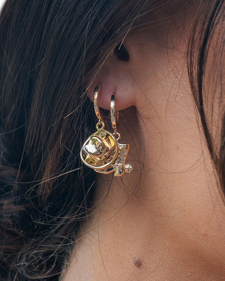 Cowboy Hat Charm Hoop Earrings in 14K Gold Plated