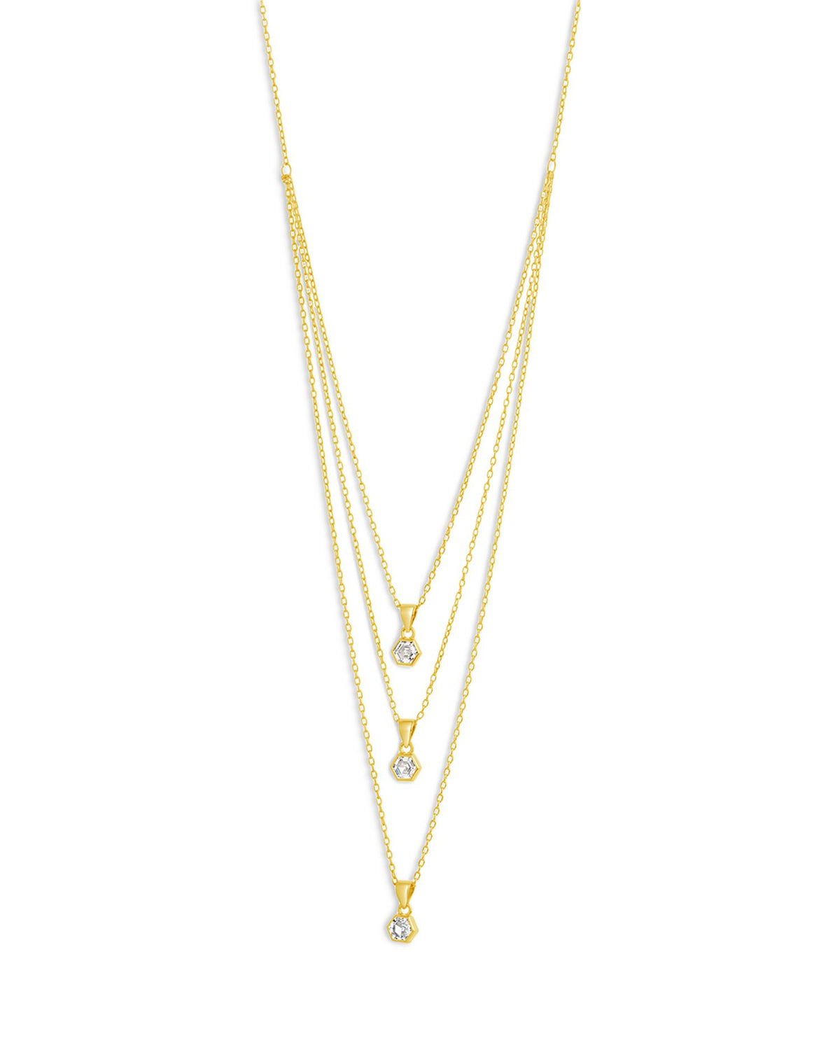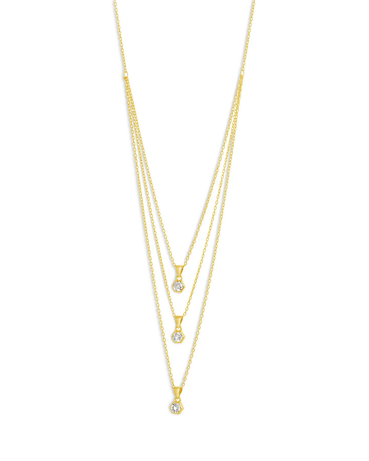 This Gia Layered Necklace by Sterling Forever delivers effortless sophistication. Featuring delicate layered chains and shimmering cubic zirconia pendants, this versatile piece adds dimension and sparkle to any outfit. Its adjustable length allows for customized styling, perfect for day-to-night looks.