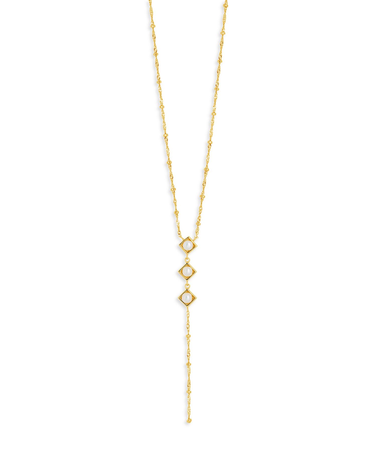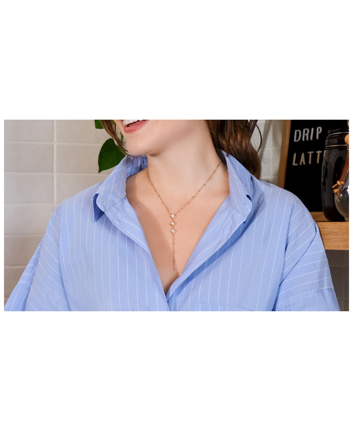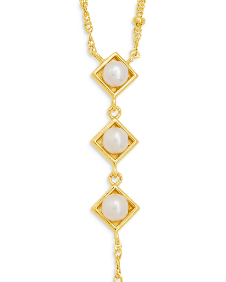 This Reine Freshwater Pearl Y Necklace by Sterling Forever brings modern elegance to a classic design. Adorned with delicate 5mm freshwater pearls, its cascading drop silhouette creates a refined, feminine look perfect for layering or wearing solo to highlight its graceful charm.