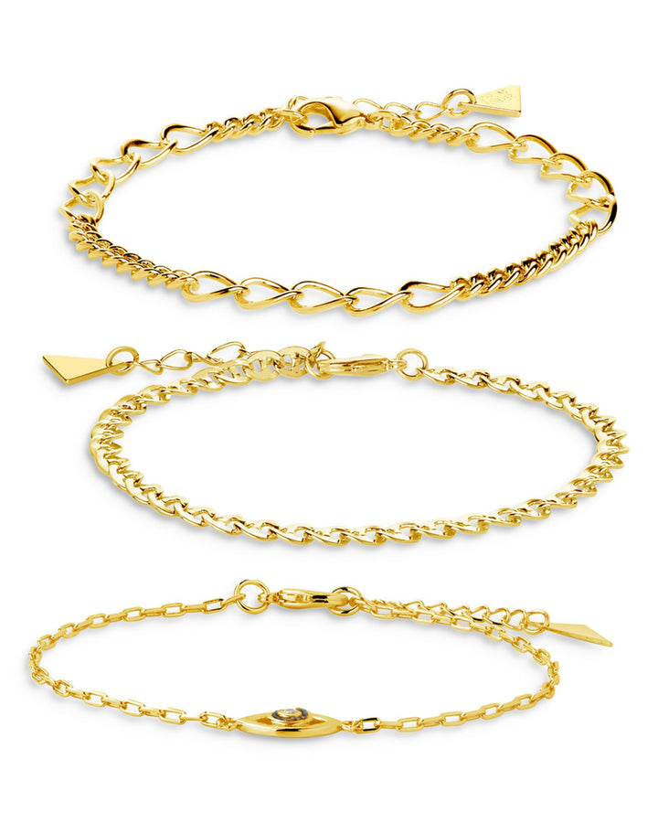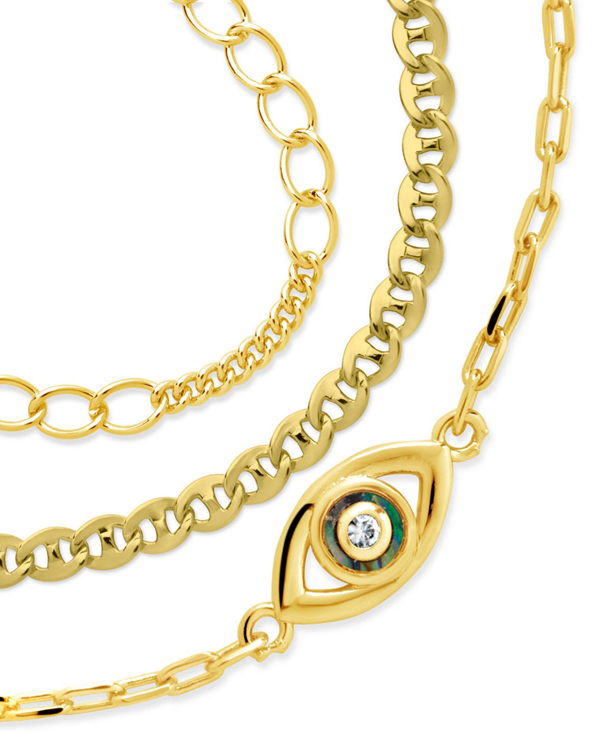 3 Piece Mother of Pearl & Evil Eye Chain Bracelet Set