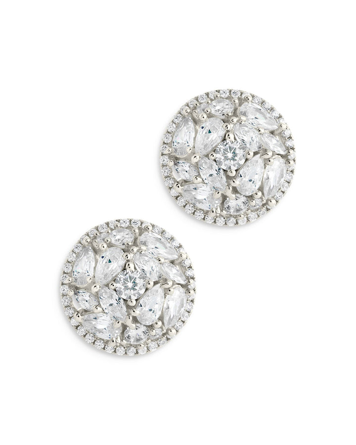 Crafted in rhodium-plated brass with cubic zirconia. Length: 0.6'. Post back closure. Nickel-free.