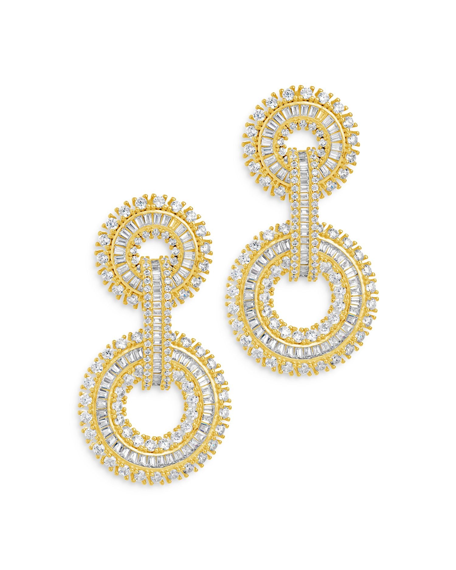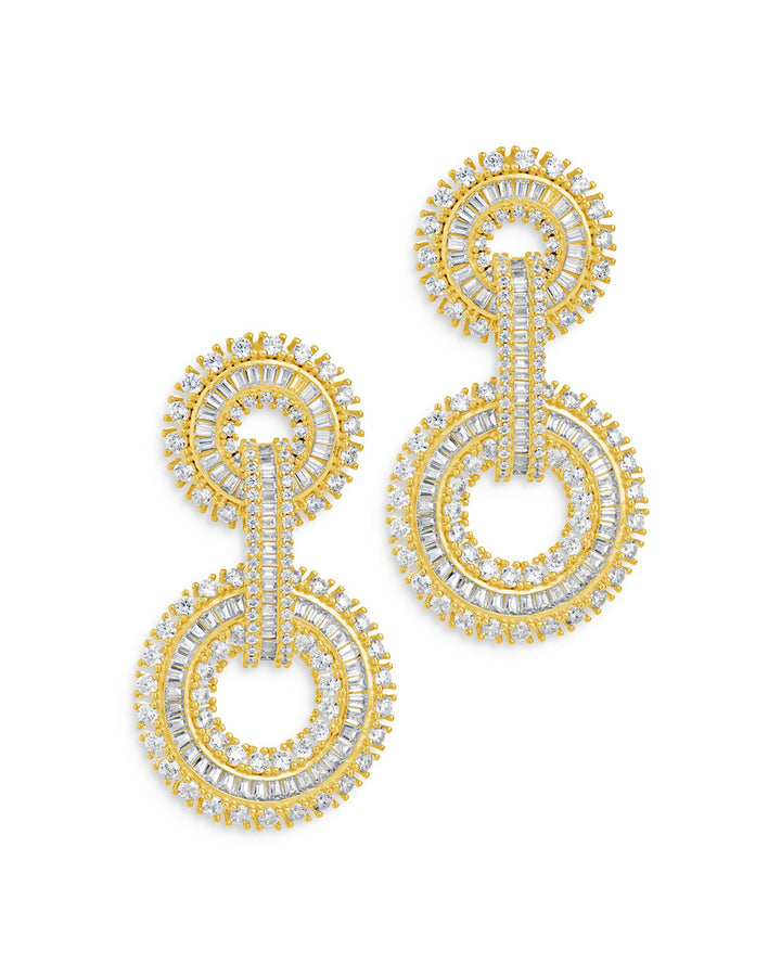 These Reese Circle Drop Earrings by Sterling Forever from the Reese collection feature a modern circular design with shimmering cubic zirconia accents. Set in a radiant gold-plated finish, they bring timeless elegance and contemporary charm to any outfit, making them perfect for special occasions.