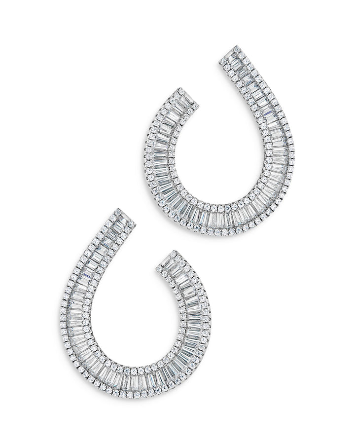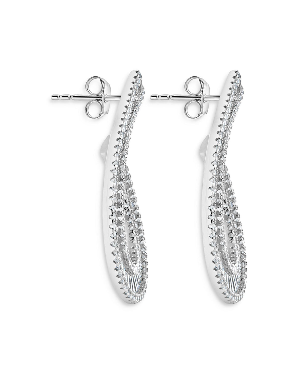 Crafted in rhodium-plated brass with cubic zirconia. Length: 1.2'. Post back closure. Nickel-free.