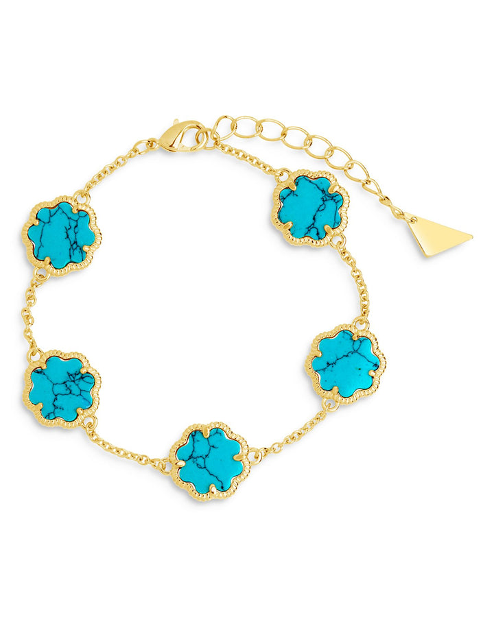 This Rose Petal Station Bracelet from the Rose Petal collection by Sterling Forever combines 14K gold-plated brass, cubic zirconia, and turquoise for a pop of color and elegance. The vibrant turquoise stations paired with sparkling cubic zirconia create a delicate yet bold statement piece, perfect for adding a touch of refinement to any look.