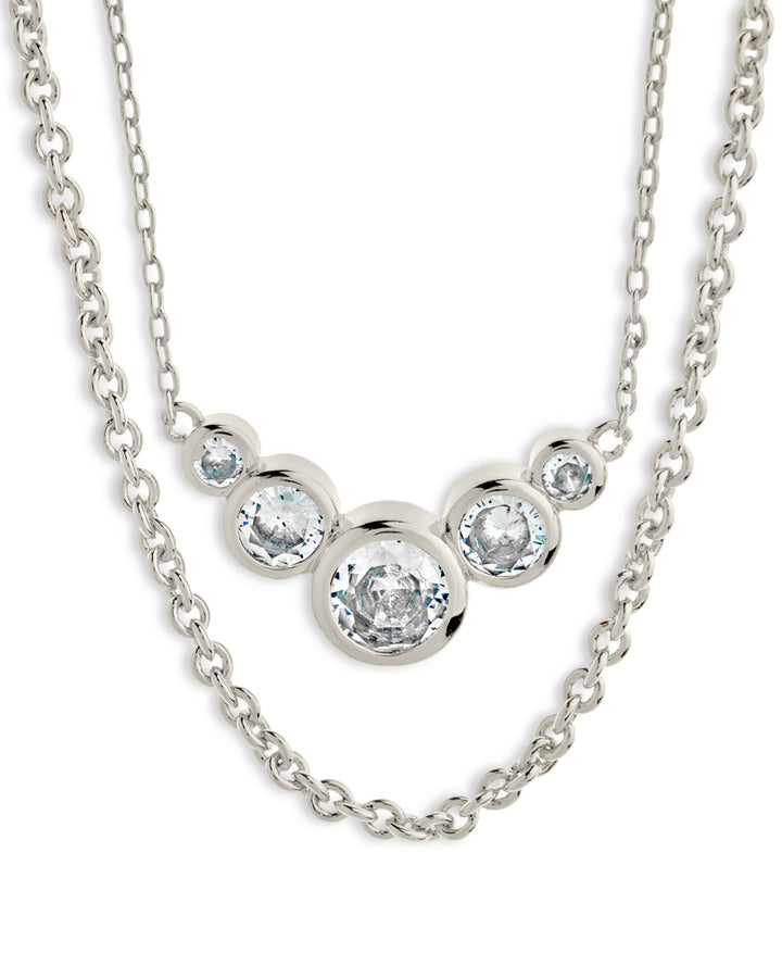 This Eileen Layered Necklace by Sterling Forever offers effortless sophistication with its layered silhouette and sparkling cubic zirconia accents. Designed in polished gold or rhodium plating, it is perfect for creating a refined, versatile statement that transitions seamlessly from day to night.