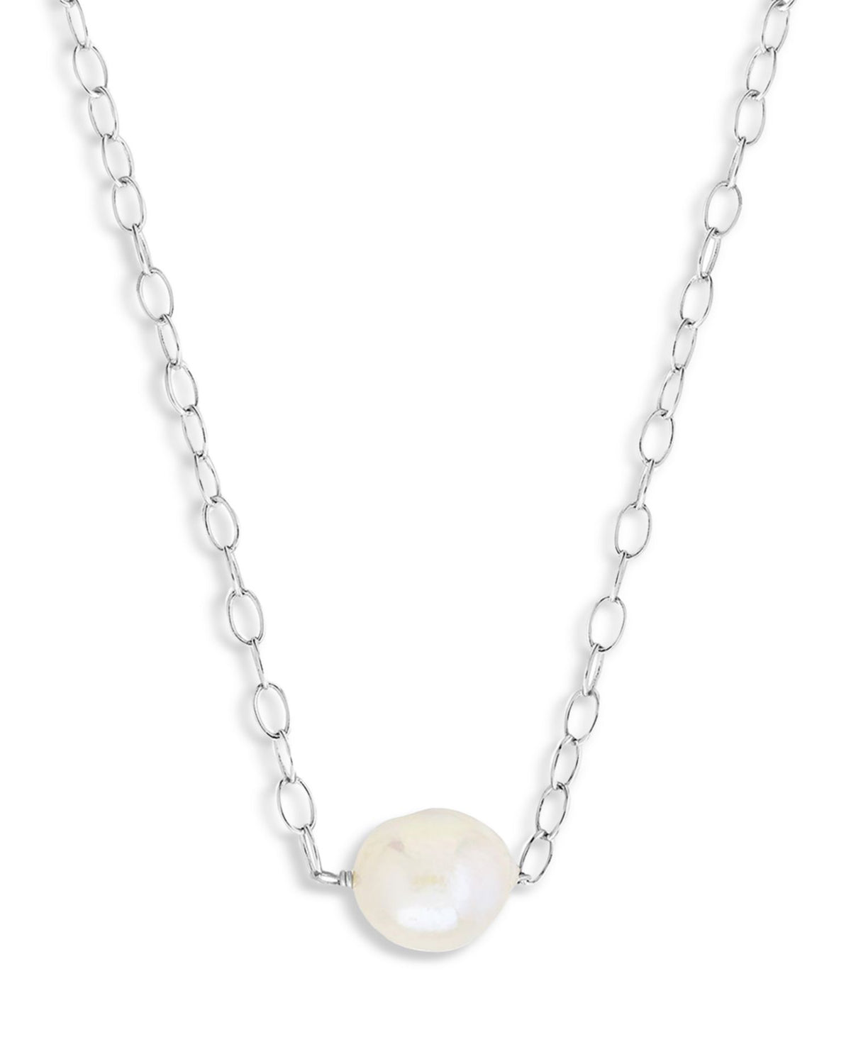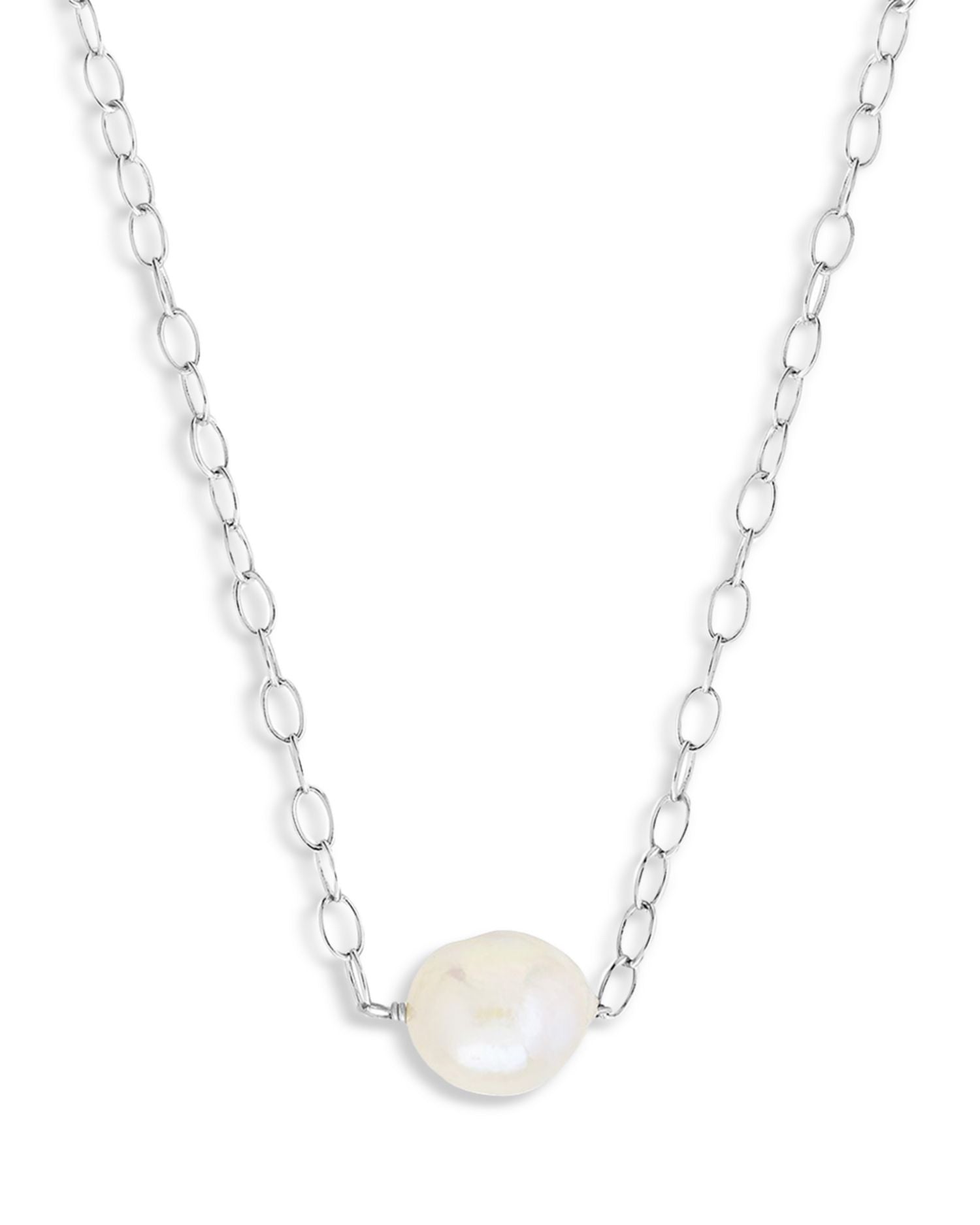 Handcrafted in rhodium-plated brass with imitation pearls. Length: 16'-17'. Lobster clasp closure. Some silver jewelry may require replating over time to maintain its shine.
