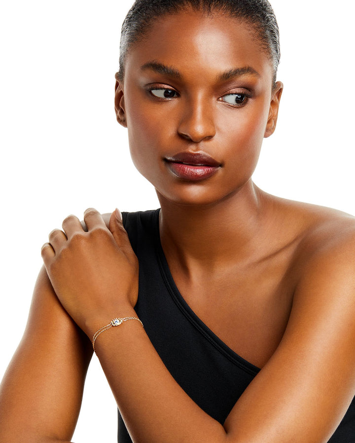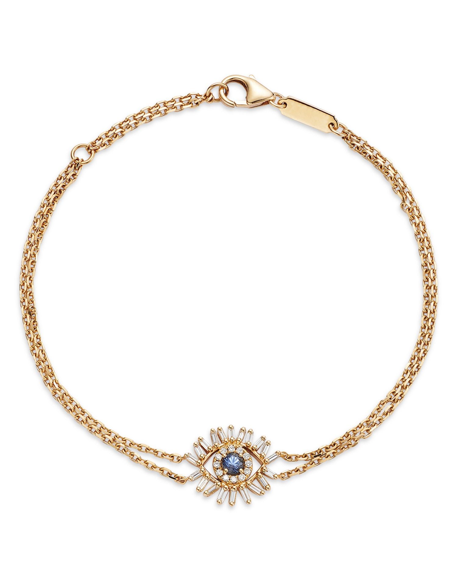 18K Yellow Gold Evil Eye Blue Sapphire & Diamond Double Chain Bracelet