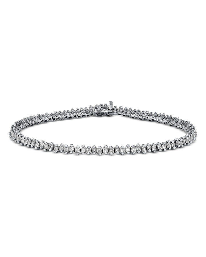This 18K White Gold Princess Diamond Tennis Bracelet by Suzanne Kalan from the Princess collection showcases timeless sophistication. Featuring dazzling princess-cut diamonds set in gleaming white gold, this bracelet is an enduring symbol of elegance, perfect for any formal or everyday look.