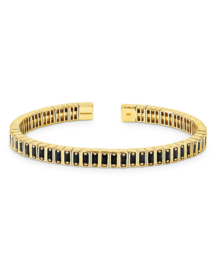 This 18K Yellow Gold Inlay Black Sapphire Cuff Bracelet by Suzanne Kalan from the Inlay collection exudes contemporary edge. Designed with striking black sapphire baguettes, this bold cuff bracelet makes a powerful style statement while maintaining timeless elegance.
