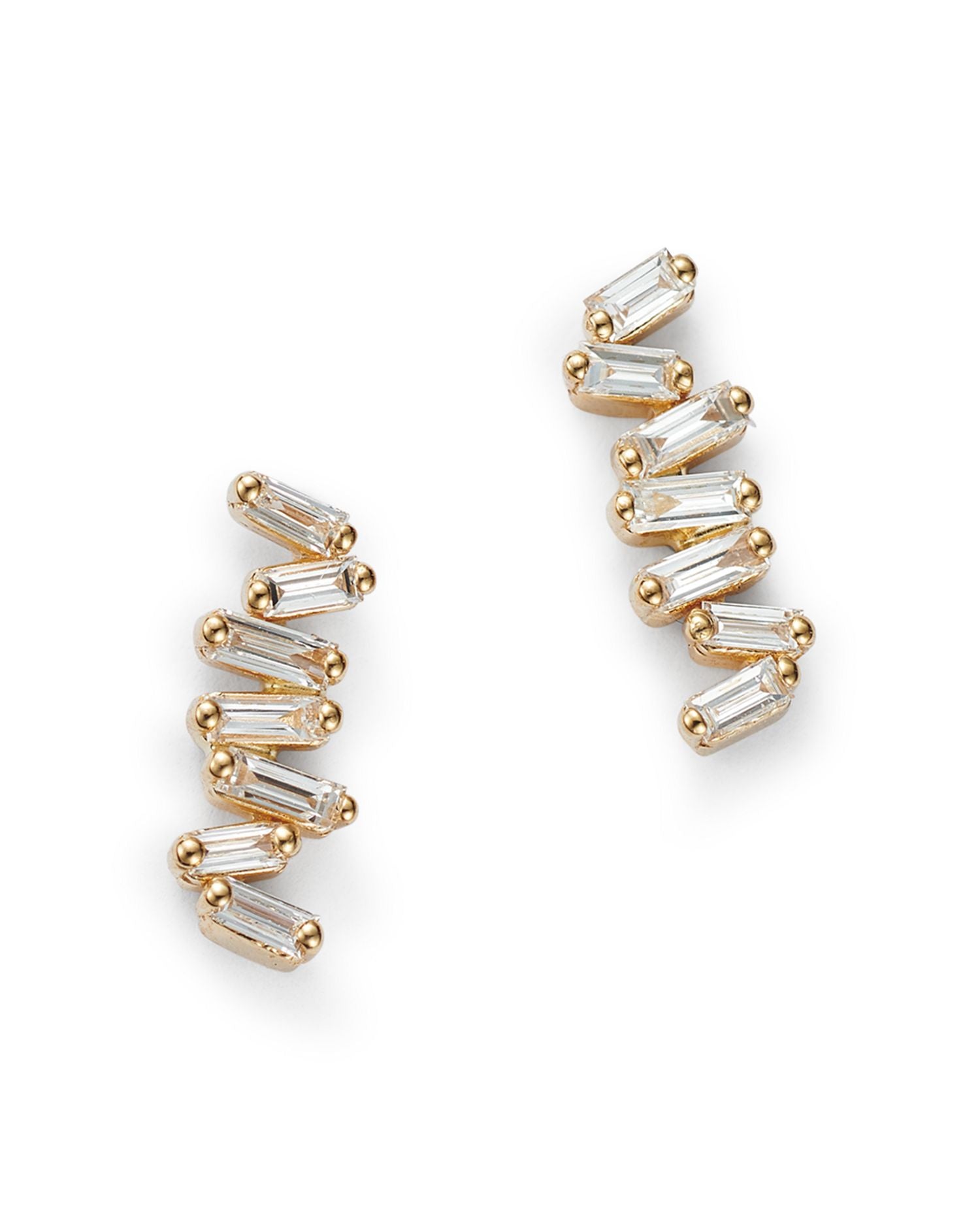 18K Yellow Gold Diamond Baguette Stud Earrings