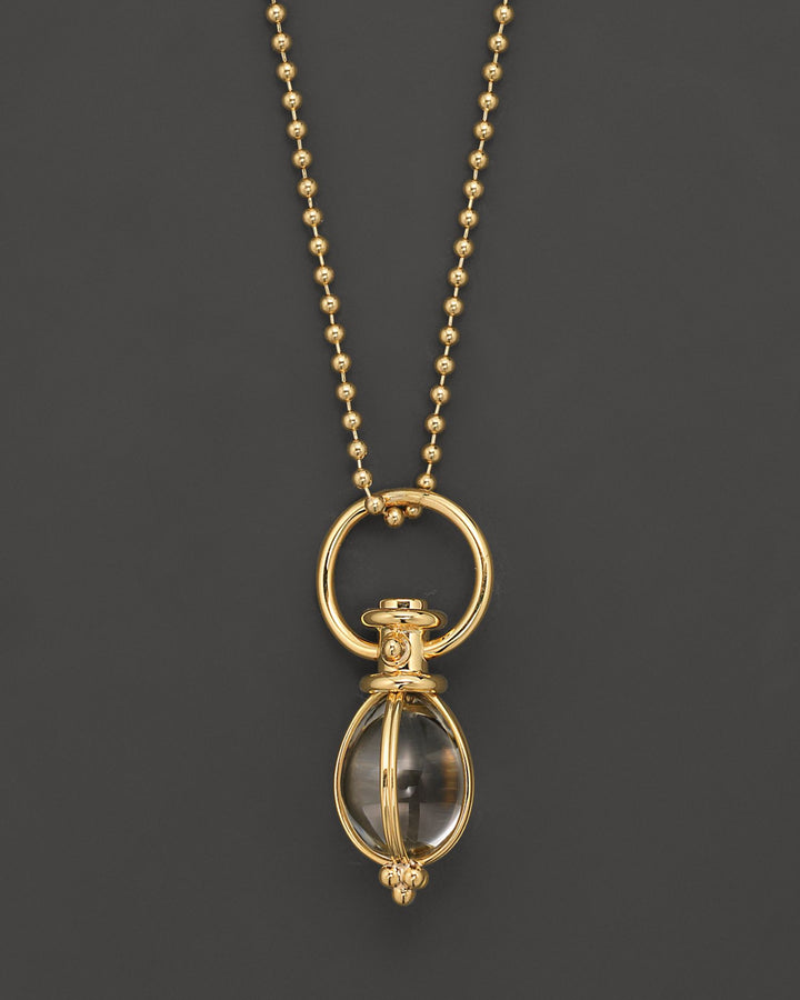 Temple St. Clair Oval Crystal Amulet and Ball Chain in 18K Yellow Gold