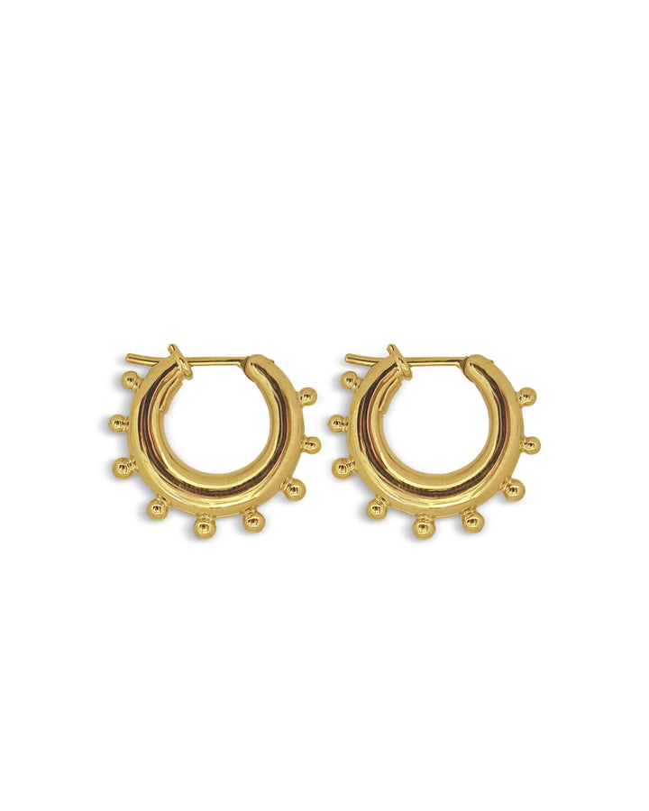 These 18K Yellow Gold Yoga Small Hoop Earrings by Temple St. Clair from the Yoga collection feature whimsical charm. Tiny gold beads line the small hoops, adding playful texture and an effortlessly elegant look ideal for everyday wear.