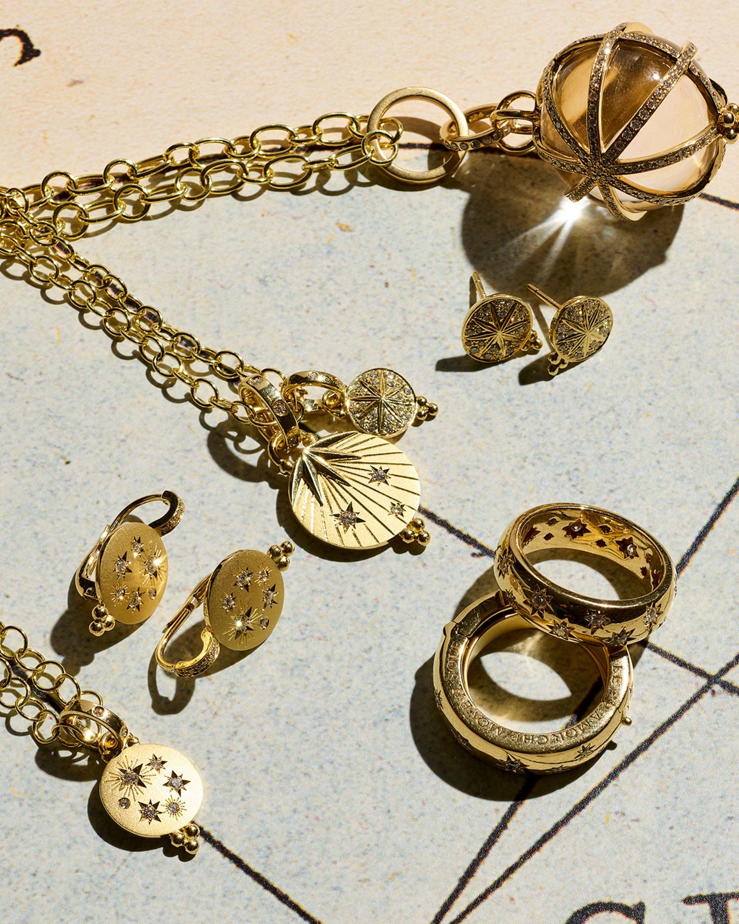 This 18K Yellow Gold Celestial Diamond Mini Sorcerer Pendant by Temple St. Clair from the Celestial collection exudes mystical charm. Adorned with brilliant diamonds, this pendant radiates celestial sparkle and timeless allure.