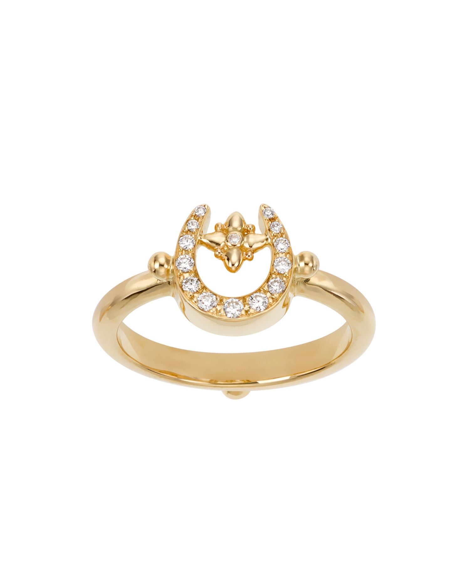 This 18K Yellow Gold Pavé Diamond Mini Horseshoe Ring by Temple St. Clair is a symbol of luck and sophistication. Crafted in radiant yellow gold and adorned with pavé diamonds, it brings timeless elegance to your jewelry collection.