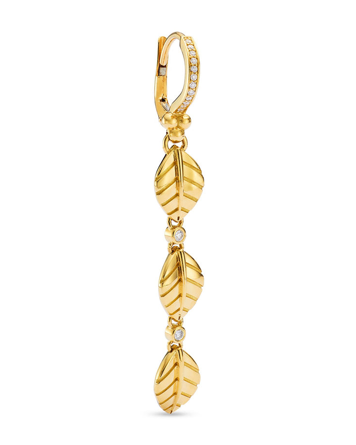 18K Yellow Gold FJ Diamond Arcadia Leaf Drop Earrings